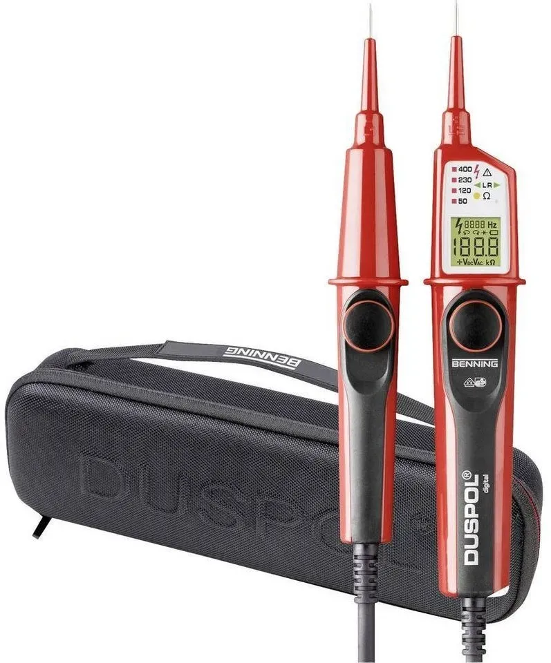 19 Händlerangebote bei billiger.de - Kategorie: Spannungsprüfer - Benning - Geeignet für Elektrotechnik, Industrie, Instandhaltung, Service (Fehlersuche), Photovoltaik-/ Windkraftanlagen und Hybrid-Fahrzeugtechnik. Hintergrundbeleuchtung der LC-Anzeige. Berührungslose Spannungserkennung, gelbe LED blinkend. Direktanzeige ohne Drucktasterbetätigung, hochohmige Prüfung. Lastzuschaltung über Drucktaster, niederohmige Prüfung. Bewusste Auslösung des RCD/FI-Schutzschalters. Vibrationsalarm im Prüfgriff. Messstellenbeleuchtung. Last zuschaltbar. Schutzart IP 65 staubdicht, strahlwassergeschützt. Robuste Gehäuseausführung mit gummierter Grifffläche. Geprüft und zugelassen nach DIN EN 61243-3, VDE 0682-401:2015. Messkategorie Cat IV 600 V, Cat III 1000 V. Länge 260 mm. Stromversorgung mit und ohne Batterie. Praktische HardCase-Tasche mit Tragegriff, gegenläufigem Reisverschluss (außen), gepolsterte Netzinnentasche mit Reisverschluss, flexible Befestigungsschlaufen mit Klettverschluss. Hoher Schutz trotz geringen Gewichts. Abmessungen Länge 330 mm x Breite 105 mm x Tiefe 65 mm. - GTIN:4014651502642 OTTO bietet hier einen Benning Duspol digital Spannungs- und Durchgangsprüfer für 115.8 Euro an, ein zuverlässiges Standardmodell. ![]() ![]()
