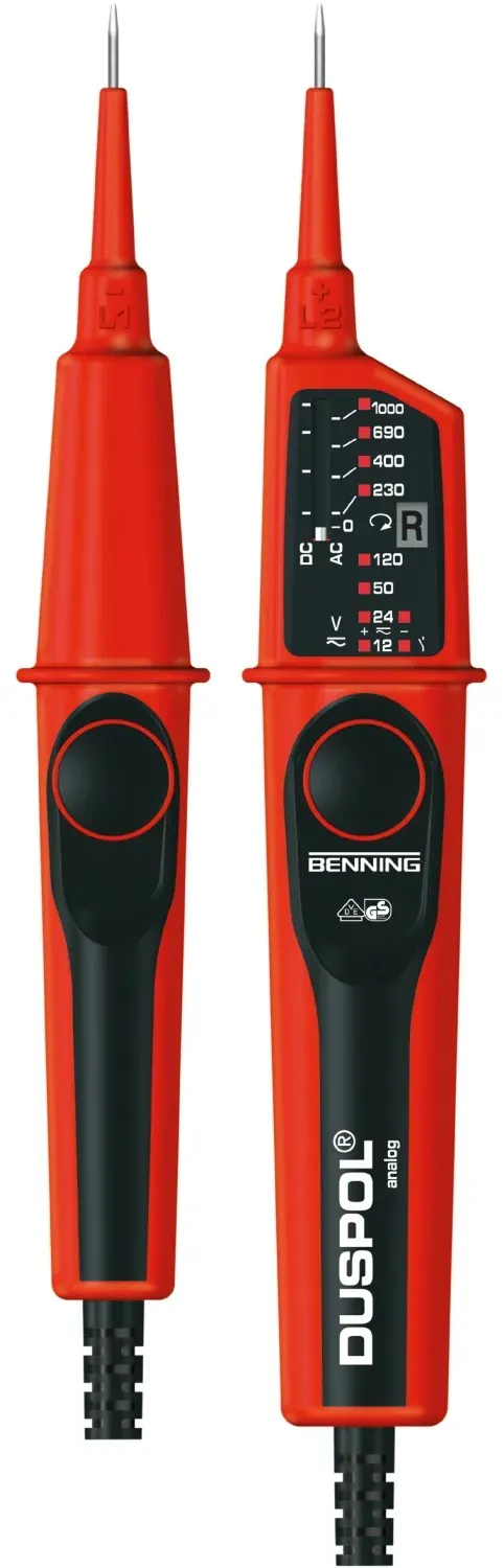 26 Händlerangebote bei billiger.de - Kategorie: Spannungsprüfer - Benning - Der DUSPOL analog ist ein Spannungsprüfer mit Tauchspul-Pegelanzeige. Geeignet für Elektrotechnik, Industrie, Instandhaltung, Service (Fehlersuche), Photovoltaik. - GTIN:4014651502611 Dieser analoge Spannungsprüfer von Benning ist eine solide Wahl für den Heimwerkerbereich. ![]() ![]() Benning Spannungsprüfer Duspol analog (12/24/50/120/230/400/690/1.000 V, Schwarz, Rot)