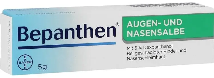 Kategorie: Arzneimittel - Bayer - GTIN:4150015786812 - PZN:01578681 - Wichtige Hinweise (Pflichtangaben): Bepanthen Augen- und Nasensalbe . Wirkstoff: Dexpanthenol. Anwendungsgebiete: Zur Unterstützung der Heilung bei oberflächlichen leichten Hautschädigung... - 3,36 Euro bei Mycare - gefunden von billiger.de Für 3.54 Euro ist dies ein angemessenes Angebot für die 5g-Tube. ![]() ![]() Bayer Vital GmbH Bepanthen Augen- und Nasensalbe 5 g 01578681_DBA