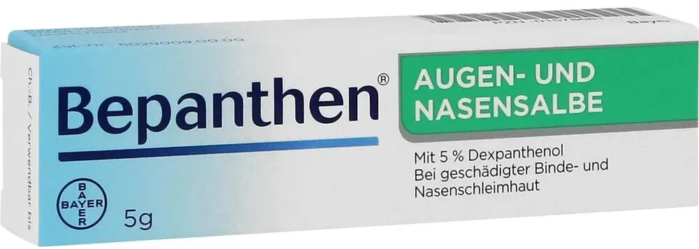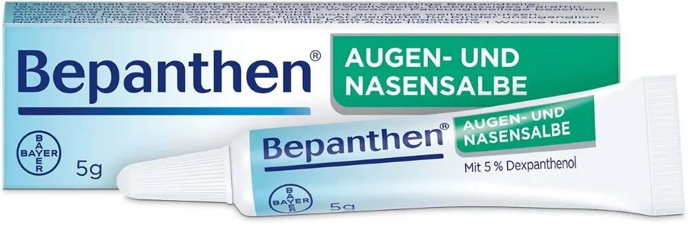 Bepanthen - Anwendungsgebiet von Bepanthen Augen- und NasensalbeBepanthen Augen- und Nasensalbe zur Förderung der Wundheilung 5g. Bei leichten Schädigungen von Binde-, Horn- oder Nasenschleimhaut: Bepanthen Augen- und Nasensalbe. Die Vorteile der Bepanthen Augen- und Nasensalbe auf einen Blick: fördert die Heilung bei leichten Verletzungen von Binde- oder Hornhaut sowie der Nasenschleimhaut sorgt für eine nachhaltige Regeneration der Wirkstoff Dexpanthenol beschleunigt die Neubildung von Hautzellen keine Farb-, Duft- und Konservierungsstoffe Unterstützen Sie mit der Bepanthen Augen- und Nasensalbe die Heilung von trockener, rissiger Nasenschleimhaut sowie leichten Verletzungen am Auge (Binde- und Hornhaut) und sorgen Sie damit für eine nachhaltige Regeneration. Dank des Wirkstoffes Dexpanthenol wird die Neubildung von Zellen angeregt und die natürliche Heilung gefördert. Die Bepanthen Augen- und Nasensalbe ist gut verträglich und frei von Farb-, Duft- und Konservierungsstoffen. Bepanthen Augen- und Nasensalbe für eine nachhaltige Regeneration. Im Sommer ist es die Allergie, im Winter der Schnupfen läuft die Nase, greifen wir vermehrt zum Taschentuch oder bei verstopfter Nase zu abschwellenden Nasensprays. Das hat allerdings zur Folge, dass die Nasenschleimhaut nach und nach austrocknet und gereizt reagiert. Sie fühlt sich trocken an, brennt oder juckt und bildet gelegentlich Krusten. Doch nicht nur das Innenleben der Nase kann bei Allergie oder Schnupfen leiden. Ständiges, ... Juvalis.de Bepanthen Augen- und Nasensalbe