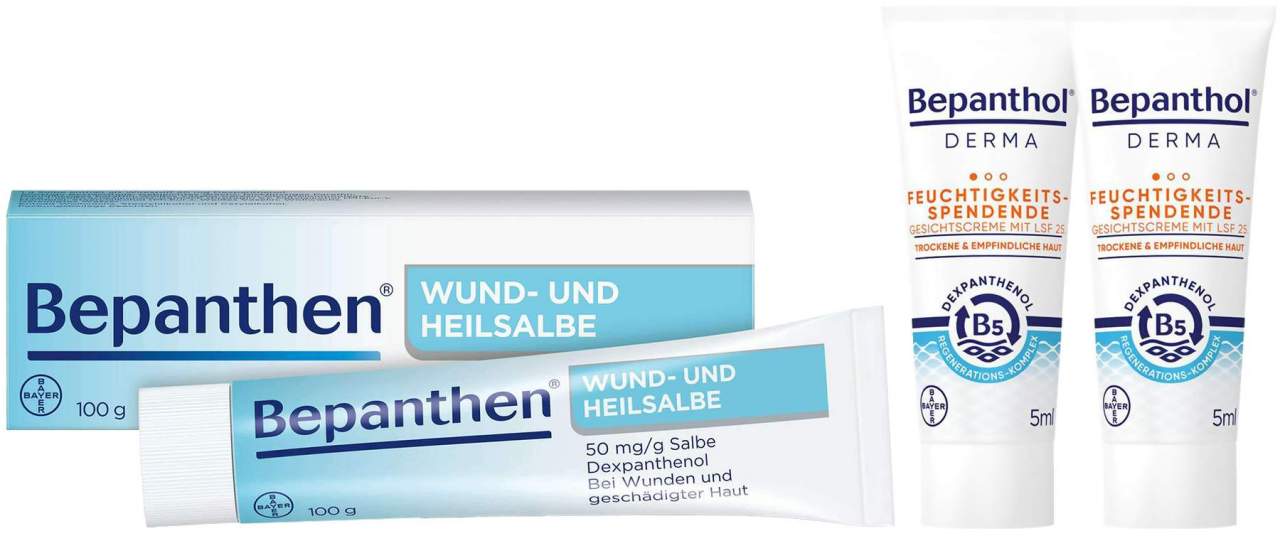 Bepanthen - PZN: 01578847 Bepanthen Wund und Heilsalbe 100 g + gratis Bepanthol DERMA Feuchtigkeitsspendende Gesichtscreme mit LSF 25 2 x 5 ml - bei volksversand.de - aus Yadore Produktdaten Für 12.99 Euro erhalten Sie hier die 100g Salbe plus eine zusätzliche 3,5g Tube, was ein gutes Bonusangebot ist. ![]() ![]() Bepanthen Wund- und Heilsalbe 100 g + 3,5 g