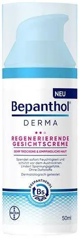 35.60 / 100 ml - Kategorie: Arzneimittel - Bayer - GTIN:4057599005790 - PZN:16529837 - BEPANTHOL Derma Intensiv Gesichtscreme 1X50 ml - 17,80 Euro bei Preisapo - gefunden von billiger.de Diese regenerierende Gesichtscreme ist ein beliebtes Produkt auf Amazon und wird von vielen Händlern angeboten, was auf eine hohe Verfügbarkeit und Beliebtheit hindeutet. ![]() ![]() Bepanthol DERMA Regenerierende Gesichtscreme, Gesichtspflege für empfindliche und sehr trockene Haut, dermatologisch getestete Feuchtigkeitscreme mit Dexpanthenol, nicht-komedogene 50 ml Pumpflasche