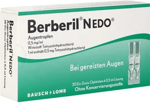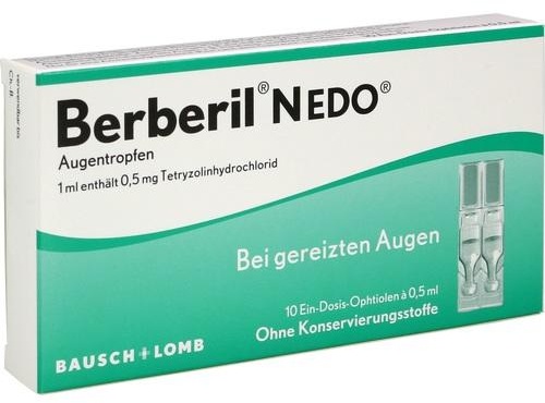 872.00 / 1 l - Kategorie: Arzneimittel - Bausch + Lomb - GTIN:4150165073565 - PZN:16507356 - 16507356: Dr. Gerhard Mann - Chemisch-pharmazeutische Fabrik GmbH - BERBERIL N EDO Augentropfen 15 ml - 13,08 Euro bei Apotheker.com - gefunden von billiger.de Dieses Angebot für Berberil N EDO Augentropfen 30x0,5 ml ist eine große Packung für regelmäßige Anwender. ![]() ![]() Bausch + Lomb Berberil N EDO Augentropfen 30X0,5 ml