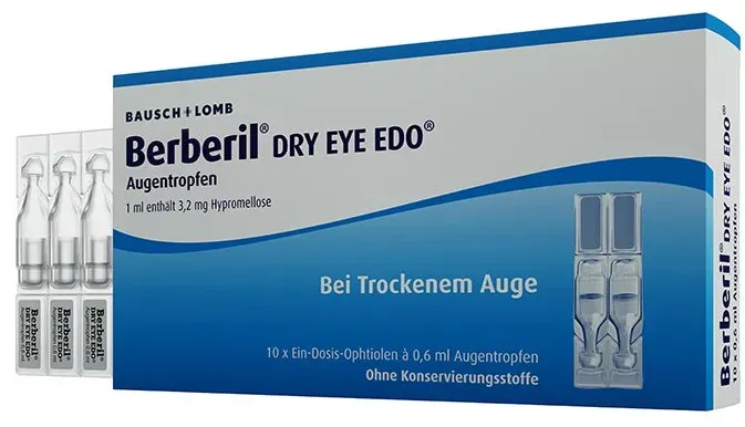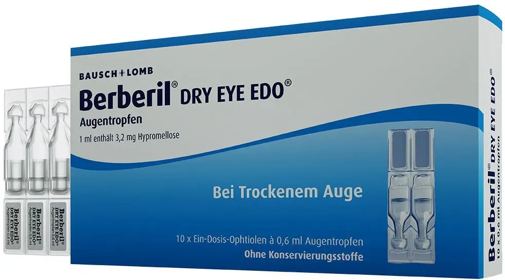 1.331,67 /l - Kategorie: Arzneimittel - Bausch + Lomb - GTIN:4030571005506 - PZN:01929471 - Berberil DRY EYE EDO 10X0,6 ml - rezeptfrei - von Dr. Gerhard Mann - Chemisch-pharmazeutische Fabrik GmbH - Augentropfen - 6 ml - 5,97 Euro bei DocMorris Apotheke - gefunden von billiger.de Dieses Angebot für Berberil Dry Eye EDO Augentropfen 10x0,6 ml ist eine praktische und hygienische Lösung für trockene Augen. ![]() ![]() Bausch + Lomb Berberil Dry Eye EDO Augentropfen 10x0,6 ml