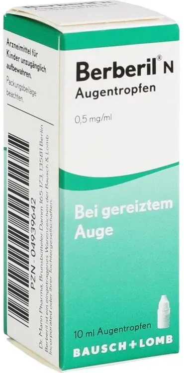 499,50 /l - Kategorie: Zubehör für Kontaktlinsen - Bausch + Lomb - GTIN:4150800401869 - Berberil N Augentropfen 2X10 ml - rezeptfrei - von Dr. Gerhard Mann - Chemisch-pharmazeutische Fabrik GmbH - Augentropfen - 20 ml - 9,99 Euro bei DocMorris Apotheke - gefunden von billiger.de Dieses Angebot für Berberil N EDO Augentropfen 15 ml bietet eine größere Flasche für langanhaltende Anwendung. ![]() ![]() Bausch + Lomb BERBERIL N EDO Augentropfen 15 ml
