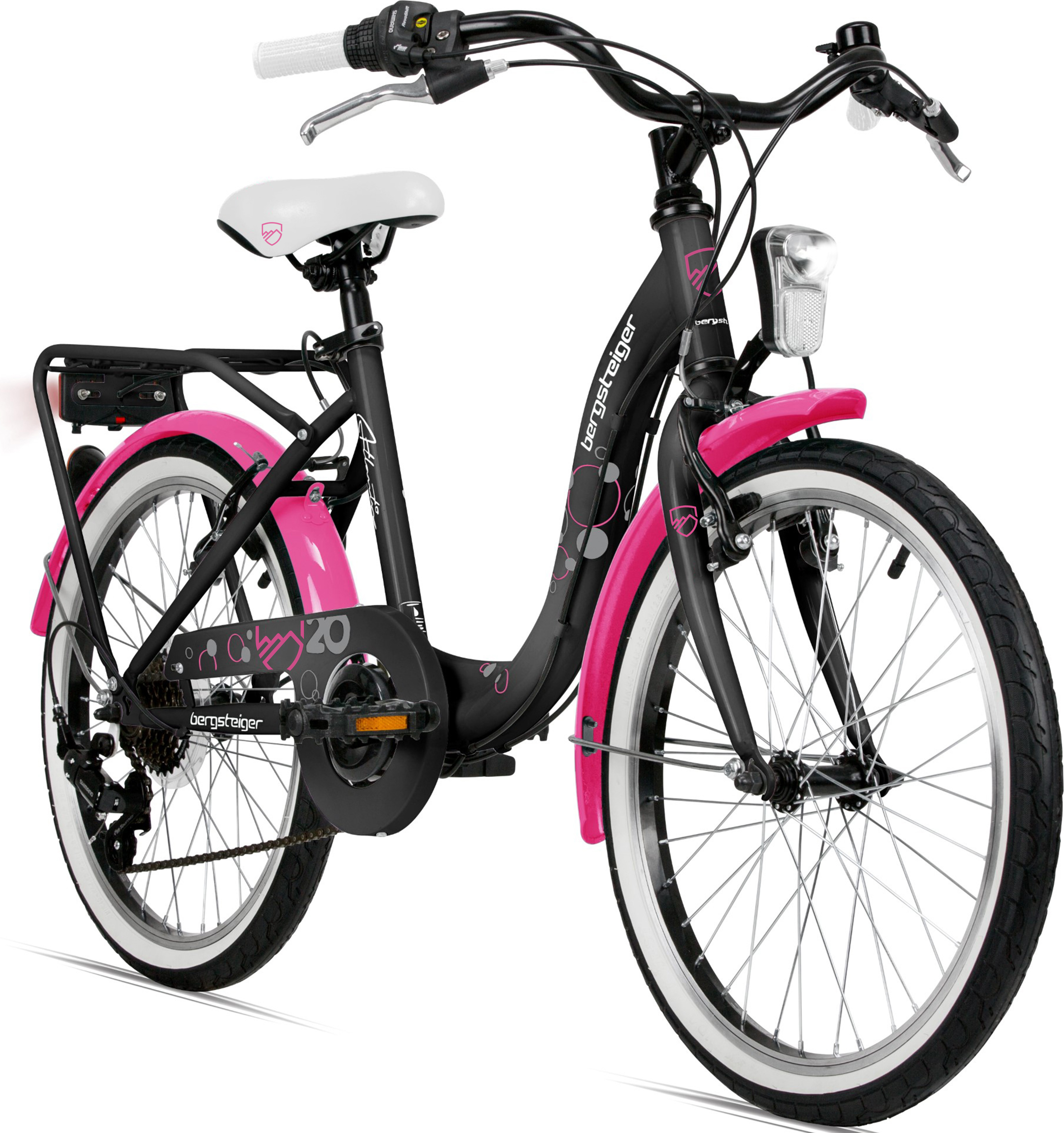 lieferbar-in 5-6 Werktagen bei dirbergsteiger Kinderfahrrad Atlantis 20, 24 Zoll Mädchenfahrrad, 6 - 11 Jahre, StVZO, 6 Gang Shimano Tourney RD-TY300 Schaltwerk, Kettenschaltung, V-Bremse rosa