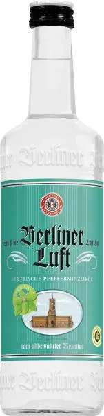 Zustand: Neu - 64,95 € / l - Liköre - Berliner Luft SCHILKIN GmbH & Co. KG BERLIN Spirituosenherstellung - - EAN: 4013228325509 - Klar, frisch & aromatisch: Der kultige Pfefferminzlikör Berliner Luft mit 18 % Vol. - ein echtes Geschmackserlebnis. Vielseitig einsetzbar: Ob pur, gut gekühlt oder als raffinierte Zutat in Cocktails und Longdrinks - Berliner Luft sorgt immer für den perfekten Mix. Kultgetränk mit Geschichte: Ein Stück Berlin in jeder Flasche! Berliner Luft ist ein fester Bestandteil der Partyszene und wird von Berlin-Liebhabern überall geschätzt. Perfekte Geschenkidee: Ob als Andenken, zum Geburtstag oder als originelles Mitbringsel - diese Flasche sorgt rt für Begeisterung bei jedem Berlin-Fan. Berliner Luft - vegan, ohne Fisimatenten und natürlich MADE IN BERLIN. Der Kultlikör direkt aus der Hauptstadt. - bei Amazon.de Dieses Geschenkset mit Gläsern ist perfekt für alle, die den Likör stilvoll genießen möchten. ![]() ![]() Berliner Luft - Pfefferminz Likör eBay Geschenkset mit 2 Gläsern - 0,7 L / 18% Vol