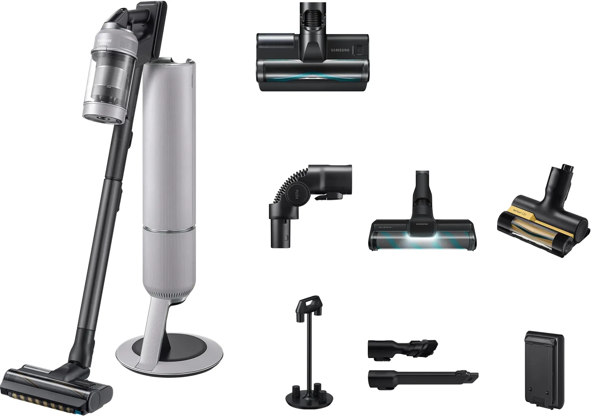 Verfügbarkeit: 2-4 Werktage - Kategorie: Staubsauger - Samsung - GTIN:8806097064275 - Akku-Handsauger, BESPOKE AI Jet CompleteClean Digital Inverter Motor mit einer starken Saugleistung von bis zu 280 W Wechselbare und ausdauernde Akkus - für Laufzeiten bis zu 60 Min. mit einem Akku AI Cleaning Mode - passt automatisch die Akku- und Reinigungsleistung verschiedenen Reinigungsumgebungen an WiFi-fähig - Per WiFi Einstellungen und Reinigungserinnerungen anpassen All-in-One Clean Station - einfache und hygienische Staubentleerung inklusive Aufladen HEPA Filter & Jet Cyclone - starke Saugleistung und saubere Luft Beleuchtete Slim LED+ Bürste - reinigt Hartböden gründlich und schonend Anti-Tangle Jet Dual Bürste - gründliche und schonende Reinigung von Teppich- und Hartböden - 599,99 Euro bei Media Markt Online Shop - gefunden von billiger.de Ein vielseitiger Akku-Handstaubsauger mit Wet & Clean Funktion, der sowohl saugen als auch wischen kann. ![]() ![]() Samsung Akku-Handstaubsauger BESPOKE AI Jet Akku+ Wet & Clean, VS80F28EGS/WD, 770 W, beutellos beige