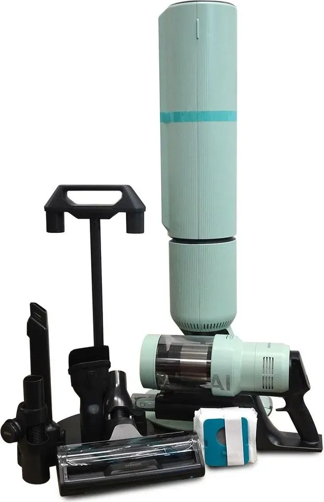 Zustand: Gebraucht - Bodenstaubsauger - Samsung - VS80F28EGS/WD - EAN: 8806097064282 - Leistungsstarker Akku-Handstaubsauger mit einer Motorleistung von bis zu 770 W und einer Saugleistung von bis zu 280 W, Mit wechselbaren und ausdauernden Akkus für bis zu 60 + 60 Minuten Laufzeit Smarte Features: AI Cleaning Mode¹ zur automatischen Anpassung der Akku- und Reinigungsleistung an verschiedene Reinigungsumgebungen und WLAN zur Anpassung von Reinigungseinstellungen und -erinnerungen Hygienische Sauberkeit: All-in-One Clean Station, die eine einfache Staubentleerung inklusive Aufladen ermöglicht und HEPA Filter, der fängt feine Staubpartikel effektiv einfängt´ Umfangreiches Zubehör: Mit AI Cleaming Mode kompatible Jet Dual+ Bürste für alle Arten von Böden, Spray Spinning Sweeper Wischaufsatz zum Nassreinigen von Hartböden mit Sprühdüse und rotierenden Wischpads, uvm. Lieferumfang: Samsung Bespoke AI Jet Akku+ Wet&Clean Akku-Handstaubsauger VS80F28EGS/WD, Lade- und Reinigungsstation, Spray Spinning Sweeper mit 2 Mikrofaser€‘Pads, Jet Dual+ Bürste, Kombidüse, Teleskop€‘Fugendüse, Flexible Tool, 2. Akku mit Ladegerät, 3 Staubbeutel, Netzteil - 2 Händler im amazon.de Marketplace Ein Akku-Handstaubsauger mit All-in-One Clean Station, der eine bequeme und hygienische Entleerung ermöglicht. ![]() ![]() Samsung Bespoke AI Jet CompleteClean mit All-in-One Clean Station, 770 W Motorleistung, Pebble Grau