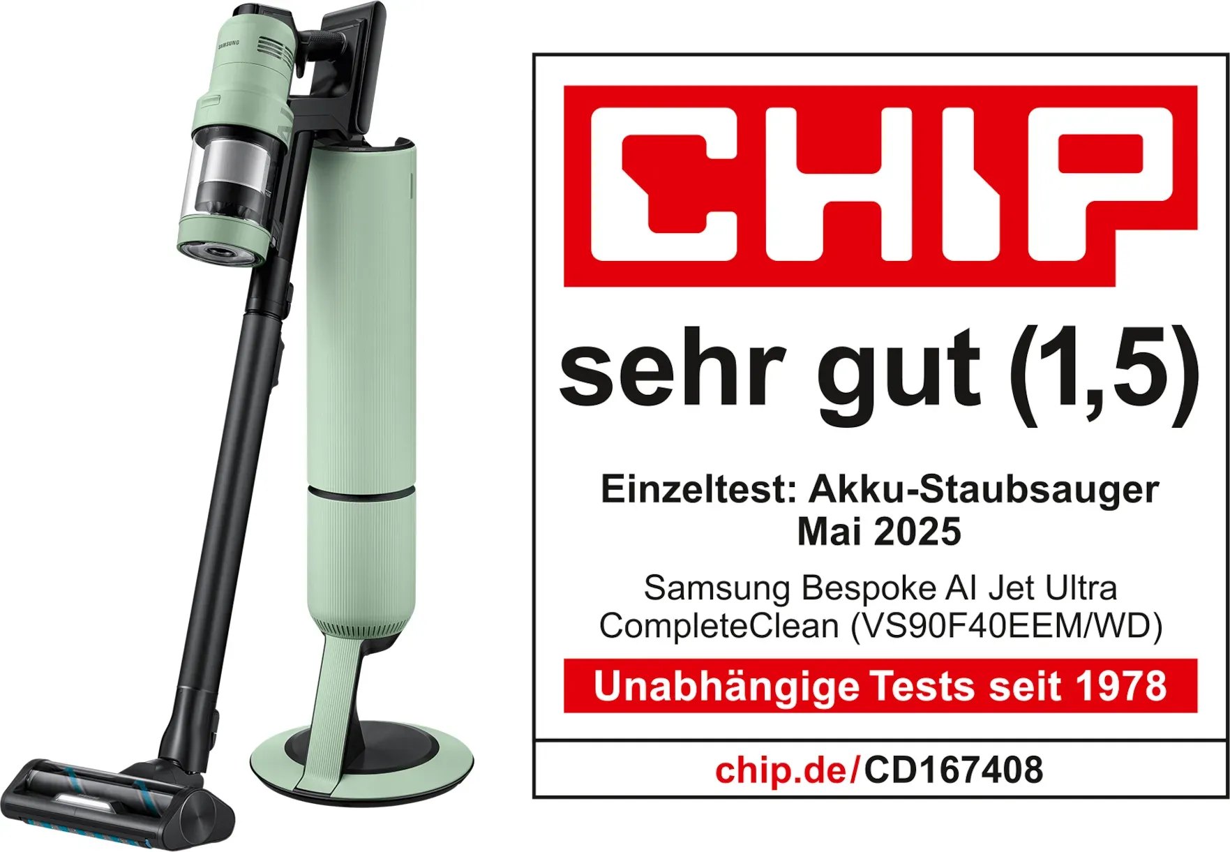 Verfügbarkeit: 1-3 Werktage - Kategorie: Staubsauger - Samsung - GTIN:8806097026242 - Reinige deine Böden gründlich mit dem leistungsstärksten Akku-Handstaubsauger seiner Klasse*. Der HexaJet-Motor mit bis zu 1050 W** erzeugt eine - 899,00 Euro bei Samsung DE - gefunden von billiger.de Das teuerste Modell in dieser Auswahl, das die höchste Leistung und alle verfügbaren Funktionen der Bespoke AI Jet Serie vereint. ![]() ![]() Samsung Bespoke AI Jet Ultra Akku+ CompleteClean Staubsauger - Grün