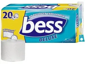 Bess - EAN: 7322540492361 - Toilettenpapier Deluxe 4-lagig 20 Rollen (1 Pack 20 Rollen), Rollengröße: Kleinrolle, Anzahl der Unterverpackungen: 1 Pack, Ausführung: weiß, perforiert, mit Prägung, Lagen: 4-lagig, Rollenart: Kleinrolle, 150 Blatt/Rolle, Anzahl der Lagen:... - bei otto-office.com - aus Yadore Produktdaten ![]() ![]() BESS Deluxe - Toilettenpapier 20X150 eBay St