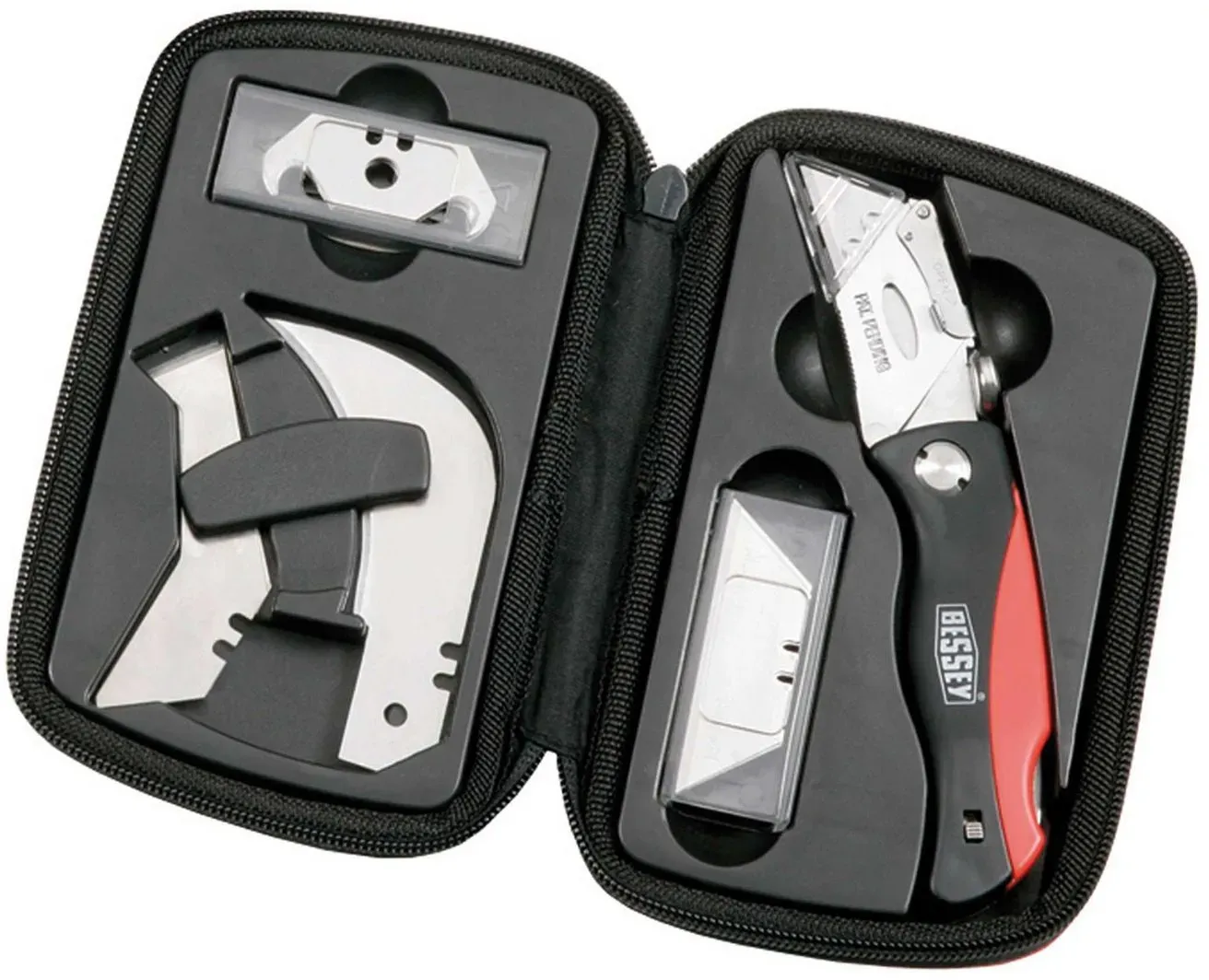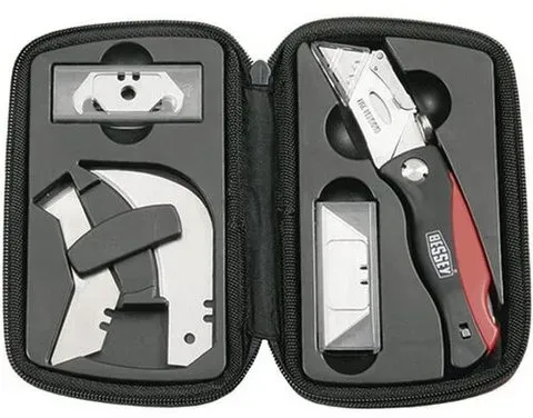 22 Händlerangebote bei billiger.de - Kategorie: Schneidwerkzeuge - Bessey - Messer mit komfortablem Kunststoffgriff. Praktisches Nylonetui mit Reißverschluss. Vier verschiedene Klingen für unterschiedliche Werkstoffe - GTIN:4010220030752 Ein beliebtes Cutter-Messer-Set mit Ersatzklingen im Etui, das von vielen Händlern auf Amazon angeboten wird. ![]() ![]() BESSEY DBKPH-SET Cutter-Messer im Etui mit Ersatzklingen