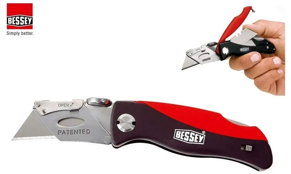 Zustand: Neu - Camping & Outdoor - BESSEY BESSEY Tool GmbH & Co. KG - DBKPH-EU FBA_BESDBKPH - EAN: 4010220030509 - Komfort Kunststoffgriff Klingenfach mit 5 Ersatzklingen Daumenkissen für max. Anpressdruck Schneller Klingentausch Gürtelclip - 44 Händler im amazon.de Marketplace Ein solides Klappmesser mit Kunststoffgriff zu einem attraktiven Preis, ideal für den regelmäßigen Einsatz. ![]() ![]() Bessey Klingen-Klappmesser mit Kunststoffgriff DBKPH-EU)