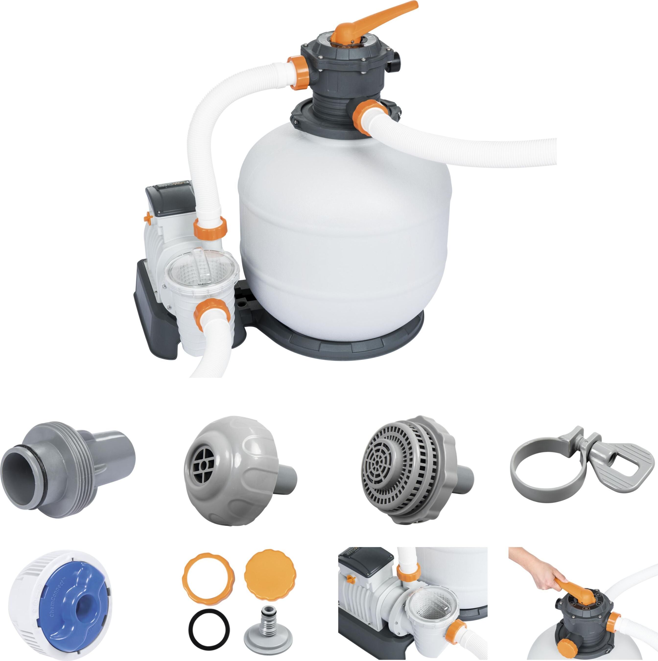 Kategorie: Poolzubehör - BESTWAY - GTIN:6941607333235 - (Contents:Sand Filter(220-240V~, 500W), Pump's water flow rate 11355L/h(3000gal/h), Required sand size: #20 silica sand, 0.45-0.85mm,approximately 55KG, Compatible with 1.25 in/ 3.2 cm valves using the adaptors included. Workonly w/ 1.5in/3.8 cm threade) - 199,89 Euro bei Amazon Marketplace Lawn & Garden - gefunden von billiger.de Diese leistungsstarke Sandfilteranlage mit 8.327 l/h ist ideal für größere Pools und bietet eine hohe Umwälzleistung. ![]() ![]() BESTWAY Flowclear Sandfilteranlage weiß 8,327 l/h