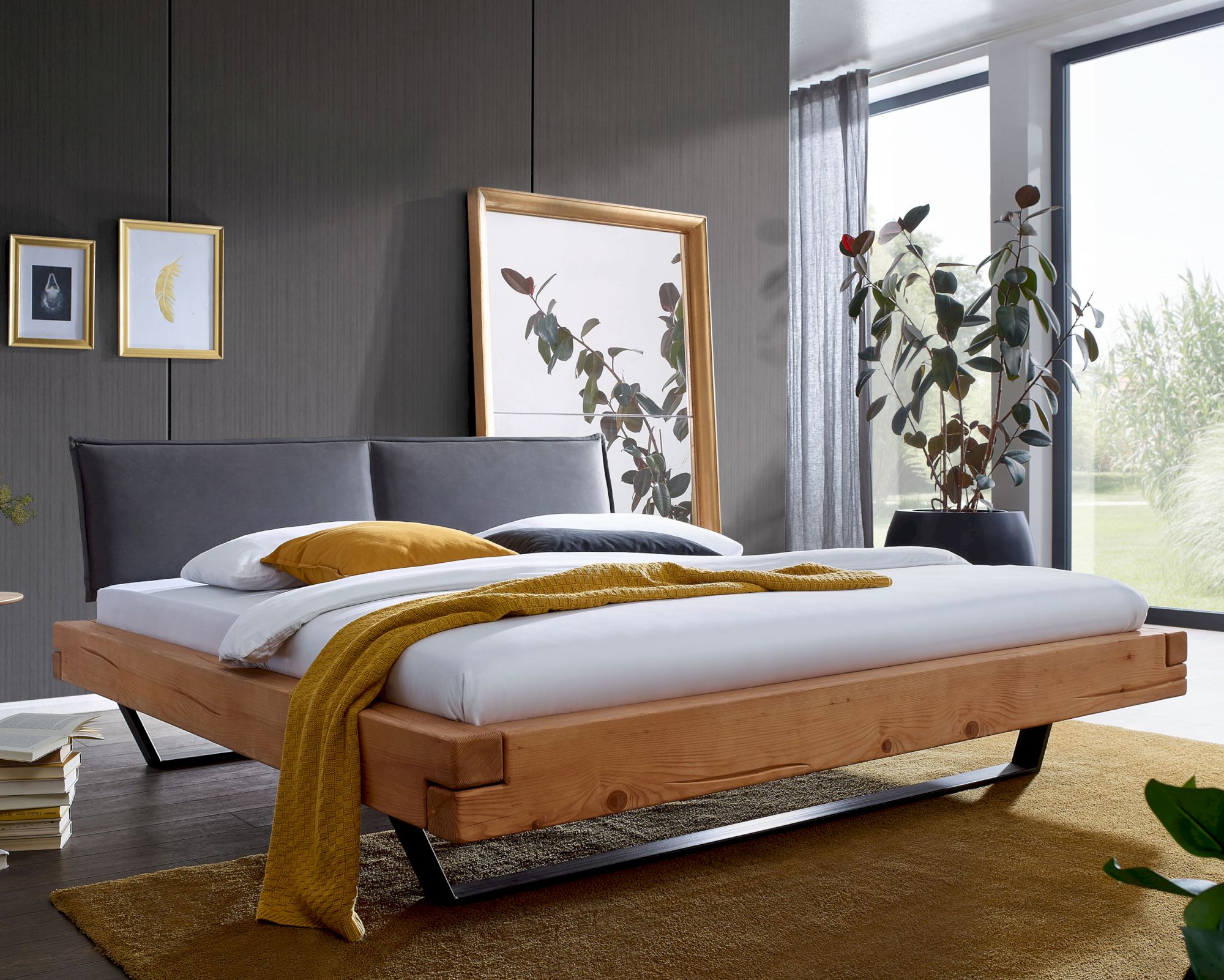 Zustand: Neu - Betten - möbelando - 590231 - EAN: 4067387194018 - Balkenbett aus massiver, bernsteinfarbig gebeizter und geölter Fichte Schwarze pulverbeschichtete Metallkufe für eine moderne Optik Stilvolles und modernes Polsterkopfteil für zusätzlichen Komfort Hochwertige Verarbeitung für Langlebigkeit und Robustheit Kombination aus natürlicher Holzoptik und zeitgemäßem Design für eine stilvolle Einrichtung - Verkäufer: möbelando im amazon.de Marketplace ![]() 3S Frankenmöbel »Henry« Balkenbett BE-0577 / 200x200 cm / Fichte massiv geölt