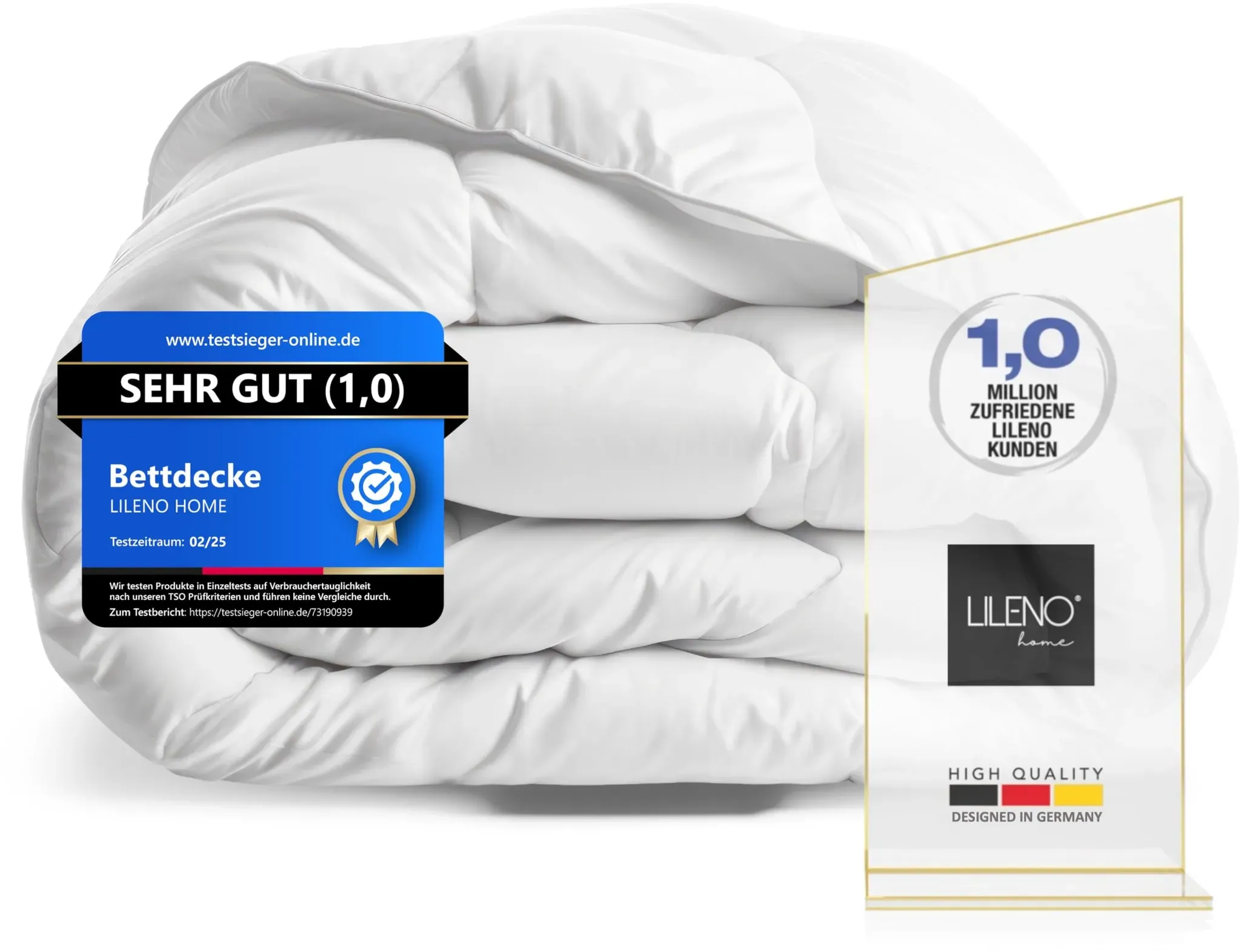 Zustand: Neu - Bettdecken - Siebenschläfer - HNG-GH-0217 - EAN: 4260488722030 - œ SCHADSTOFFFREI: Sie verbringen ca. einen Drittel Ihrer Lebenszeit im Schlaf. Riskieren Sie dabei besser nicht Ihre Gesundheit und achten Sie auf das Ökotex-Siegel für schadstoffgeprüfte Produkte. œ WASCHBAR BEI 95°C: Weil wir während des Schlafes oft schwitzen, sollte die Bettdecke regelmäßig gewaschen werden. œ IDEAL FÜR DEN SOMMER: Im Sommer brauchen wir bei wärmeren Temperaturen eine viel dünnere Decke als im Winter. Die Siebenschläfer leichte Sommer-Bettdecke ist die perfekte Bettdecke für die warme Jahreszeit. Füllung: 170 g/m² œ HERGESTELLT IN DER EU: Wir haben uns bewusst für eine Produktion innerhalb der EU entschieden, um höchste Standards in Produktsicherheit und sozialen Arbeitsbedingungen zu gewährleisten sowie kurze und umweltfreundliche Lieferwege zu ermöglichen. - Verkäufer: DEJO-Commerce im amazon.de Marketplace Diese Ganzjahres-Bettdecke ist mit 36.99 Euro eine solide und kochfeste Option für Allergiker. ![]() ![]() LILENO HOME Bettdecke 200x200 cm [1er Pack] - Ganzjahres Bettdecke 200x200 cm für einen erholsamen Schlaf - Sommer Winter Bett Decke 200x200 cm Kochfest bis 95° C - Allergiker Steppdecke