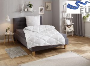 Betten Wohnen Schlafzimmer Betten Matratzen - - Das kochfeste Microfaserbettdecken-Programm »Mondschein« der Marke my home. Der anschmiegsame Bezug aus Microfaser ist angenehm weich im Griff und feuchtigkeitsregulierend. Der hochwertige Microfaser-Feinbatist mit Antibac hat eine dauerhaft antibakerielle Ausrüstung - auch nach vielen Wäschen. Zusammen mit der hochbauschigen Füllung aus spiral gekräuselter 3D-Faser bietet dir das Bettdecken-Programm das ganze Jahr über angenehme Wärme. Ein weiterer Vorteil ist, dass du die Bettdecke bei bis zu 95 °C kochen kannst. Die kochfeste Microfaserbettdecke »Mondschein« der Marke my home.., Details: Art Decke: Steppbett, Wärmeklasse: normal, Füllgewicht: 1.400 g, Bezug: Material Bezug: Kunstfaser, Farbbezeichnung: weiß, Bezugsqualität: normal, Art Steppung: Ornamentsteppung, Art Einfassband: ja, weiß, Farbe Einfassband: weiß, Art Bezug: Polyester Bezug, Füllung: Material Füllung: Kunstfaser, Material: Materialzusammensetzung: Bezug: 100% Polyester. Füllung: 100% Polyester, Maßangaben: Breite: 200 cm, Länge: 200 cm, Lieferumfang: Anzahl Teile: 1 Stk., Pflegehinweis: Pflegehinweise: 95°C Maschinenwäsche, trocknergeeignet, Wissenswertes: Allergikerinformation: Hausstauballergiker geeignet, Besondere Hinweise: Eine 4-Jahreszeiten-Bettdecke besteht aus zwei unterschiedlich dicken Bettdecken, die einzeln oder zusammengeknüpft verwendbar sind. Die leichte Ausführung kann einzeln als Sommerdecke genutzt werden, die etwas fülligere Bettdecke ... Diese 4-Jahreszeiten-Bettdecke bietet mit 28.04 Euro eine flexible und preiswerte Lösung für das ganze Jahr. ![]() ![]() Blumtal 4 Jahreszeiten Bettdecke 200x200 cm - Oeko-TEX zertifizierte Steppdecke 200x200 cm - zusammenknöpfbare Vier-Jahreszeiten-Bettdecke/4 Jahreszeiten Bettdecke 200x200 - Sommerdecke + Winterdecke