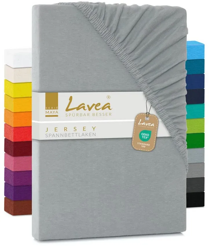 Der angezeigte Preis könnte seit dem letzten Update gestiegen sein - EAN: 4068222164036 - Bestseller. Das Spannbettlaken »Single-Jersey XL« der Marke my home kann in mehrfacher Hinsicht überzeugen. Es ist aus pflegeleichtem Jersey hergestellt. Dieser Stoff ist dehnbar und anschmiegsam, durch den umlaufenden Gummizug schmiegt sich das... - Zustand: NEW - bei BAUR Versand - gefunden von Buycentral Ein vielseitiges Jersey-Spannbetttuch aus Baumwolle, das auch für Topper, Boxspring- und Wasserbetten geeignet ist. ![]() ![]() Lavea Spannbettlaken Maya, in Gr. 60x140, 90x200, 120x200, 140x200, 180x200 oder 200x220 cm, Baumwolle, Gummizug: rundum, (1 Stück), Jersey Spannbetttuch für Topper, Boxspring- und Wasserbetten silberfarben 60/70 cm x 130/140 cm