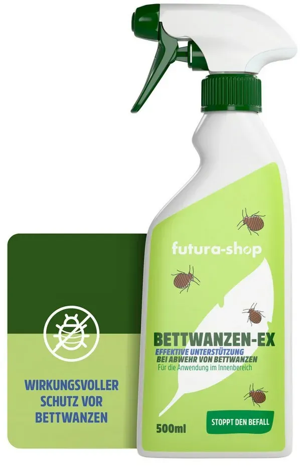 Kategorie: Pflegemittel & Schädlingsbekämpfung - Silberkraft - GTIN:4260568551413 - Bettwanzen effektiv bekämpfen: Unser Bettwanzenspray wirkt durch die repellierende Wirkung von Geraniol sofort und effektiv gegen Bettwanzen aller Art und beugt dem Befall von Bettwanzen Eiern vor. Vielseitige Anwendung: Das Silberkraft Bettwanzenspray direkt auf Matratzen, Sofas, Kissen, Teppichen, Koffern, Kleidung, Polstermöbel und anderen Oberflächen eingesetzt werden. Das Produkt ist auf Wasserbasis mit dezentem Zitronenduft. Langfristiger Schutz: Bettwanzen werden bis zu 3 Monate ferngehalten und der Befall löst sich auf. Die Bettwanzen werden also dauerhaft und langfristig entfernt. Hergestellt in Deutschland: Das Silberkraft Bettwanzenspray wird in Deutschland und unter hohen Qualitätsstandards hergestellt. Die Verpackung wird ressourcenschonend aus recyceltem Kunststoff produziert HINWEIS: Biozidprodukte vorsichtig verwenden. Vor Gebrauch stets Etikett und Produktinformationen lesen. Produkt ist in der eBIOMELD Datenbank der Bundesanstalt für Arbeitsschutz und Arbeitsmedizin als PT19 Repellent, BAuA-Nr: N-114989 registriert. - 16,79 Euro bei Amazon Marketplace Health & Personal Care - gefunden von billiger.de Dieses geruchsneutrale Spray von Futura-Shop ist eine gute Sofortmaßnahme und ideal für empfindliche Nasen. ![]() ![]()