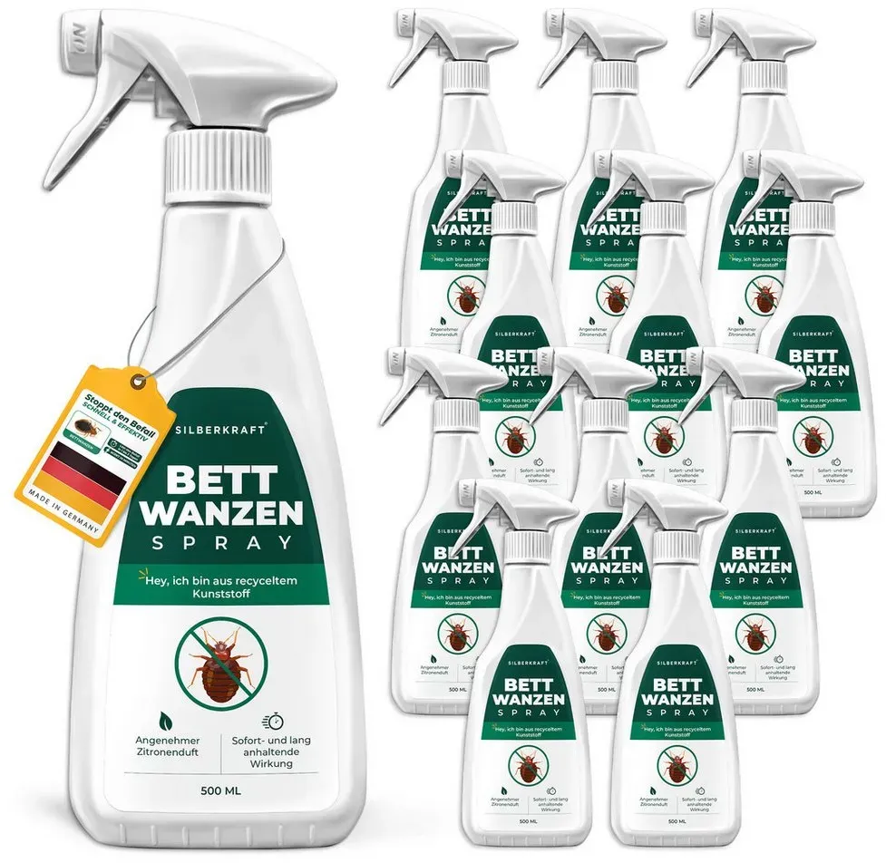 lieferbar-in 4-5 Werktagen bei dirSilberkraft Insektenspray Silberkraft Bettwanzenspray, hält Textilien frei von Bettwanzen, 500 ml, 12-St., Sofortige & langanhaltende Wirkung gegen Bettwanzen, ohne Permethrin