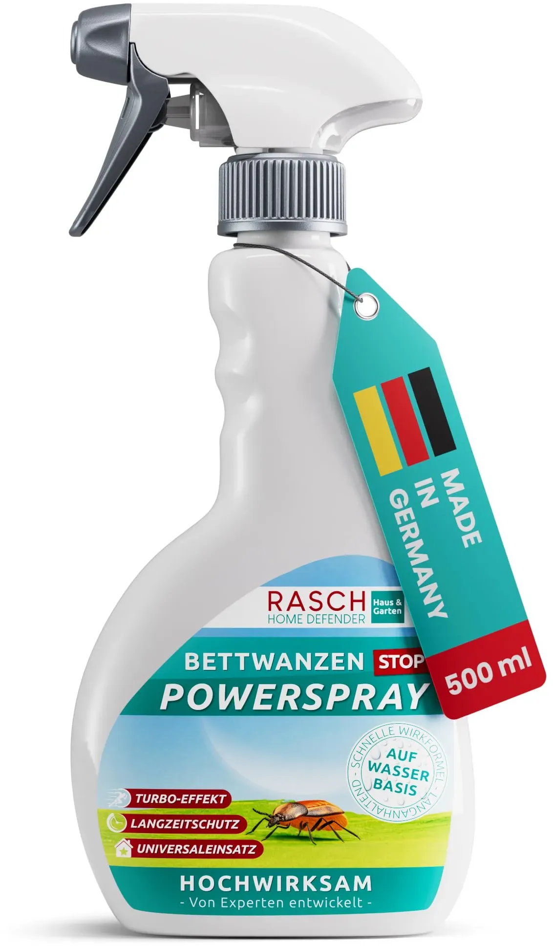 Kategorie: Zubehör für Landwirtschaft - Rasch Textil - GTIN:4049024110964 - EFFEKTIVE BETTWANZENVERGRäMUNG: Das Rasch-Bettwanzenspray ist ein effektives und sicheres Mittel zur Befreiung von Silberfischen. Unser Qualitätsprodukt mit schnellem Vergrämungs-Effekt befreit Sie Sie schnell von unhygienischem Ungeziefer. VIELSEITIGE ANWENDBARKEIT: Unser Bettwanzen-Spray eignet sich nicht nur zur Bekämpfung von Bettwanzen, sondern wirkt auch gegen Hausstaubmilben. KOMFORTABLE SPRüHEINSTELLUNG: Mit dem beiliegenden Sprühkopf haben Sie die Wahl, wie Sie das Insektenspray anwenden möchten. Selbst schwer zugängliche Stellen wie Mauerritzen und Fugen sind gut erreichbar. LANGANHALTENDE WIRKUNG: Das Ungezieferspray bleibt 4-6 Wochen nach dem Sprühen wirksam, um eine nachhaltige und langfristige Vergrämung von Bettwanzen zu gewährleisten. SICHER UND PRAKTISCH: Dank seiner sicheren Formel können Sie das Bettwanzen Spray bedenkenlos im Wohnbereich anwenden. Hinweis: Biozidprodukte vorsichtig verwenden. Vor Gebrauch stets Etikett und Produktinformationen lesen. BauA-Reg.-Nr.: N-115087 - 16,95 Euro bei Amazon Marketplace Health & Personal Care - gefunden von billiger.de Ein Tiervertreiber-Spray, das auch gegen Bettwanzen wirksam ist und eine vielseitige Anwendung ermöglicht. ![]() Knock Off, Tiervertreiber, Knock Pest Bedwantsen spray