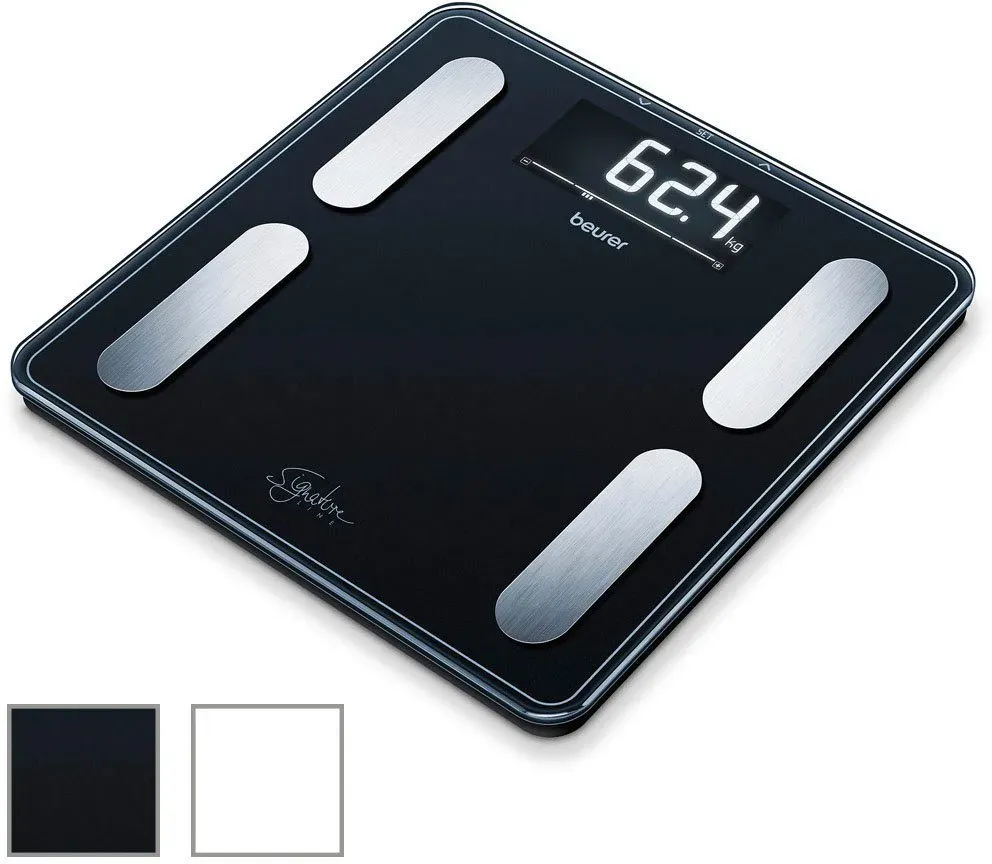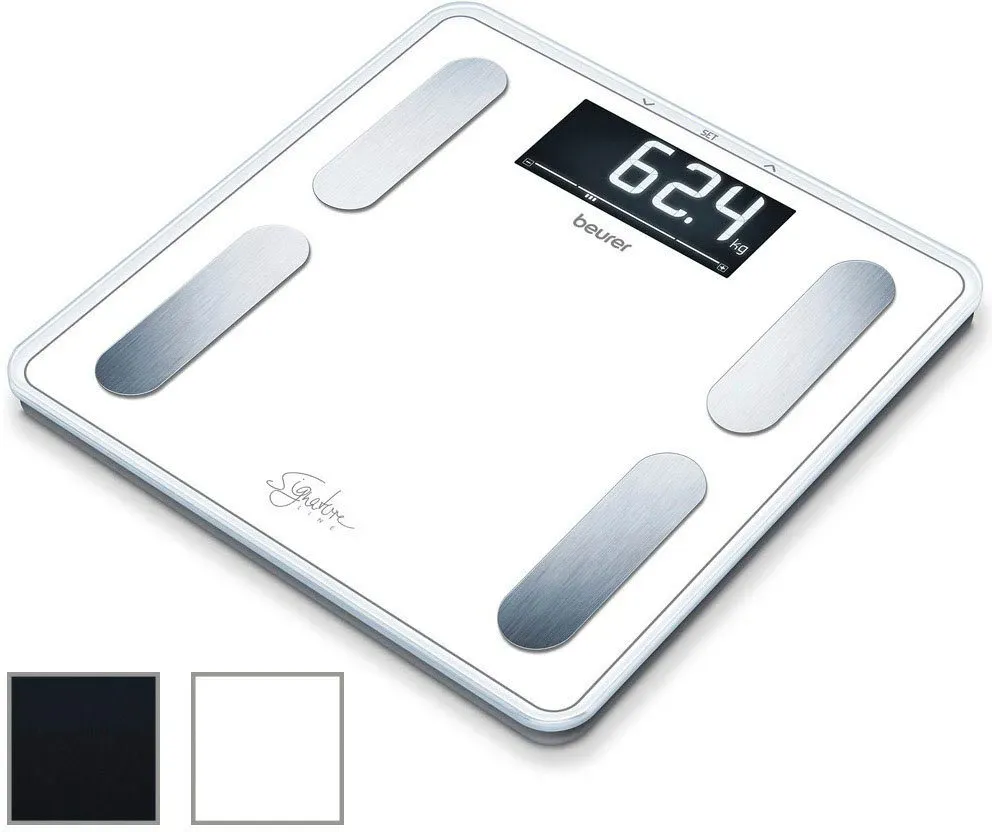 Zustand: Gebraucht - Körperanalysewaagen - Beurer - 2210 76011 - EAN: 4211125760113 - DETAILLIERTE KÖRPERANALYSE: Die Diagnosewaage ermittelt neben dem Körpergewicht weitere wichtige Körperdaten wie das Körperfett, das Körperwasser, die Knochenmasse, die Muskelmasse, den Kalorienbedarf AMR/BMR und den BMI MIT APP: Die Messdaten von bis zu 8 Personen werden per Bluetooth in die 'beurer HealthManager Pro' App übertragen und grafisch ausgewertet - die Waage kann jedoch auch ohne App genutzt werden DATEN IMMER IM BLICK: Die Körperfettwaage ermöglicht jederzeit das Prüfen der Körperwerte per Smartphone - so behält man die Körperdaten Zuhause und auch Unterwegs immer im Blick BELASTBARE ANALYSEWAAGE: Die stabile 30x30 cm Trittfläche der Körperwaage besteht aus robustem Sicherheitsglas und verfügt über eine Tragkraft von bis zu 180 kg, mit integrierter Überlastungsanzeige UNSICHTBARES DISPLAY: Die Personenwaage überzeugt nicht nur durch ihr modernes schwarzes Design, sondern auch durch ein extra großes Magic Display mit 40 mm Ziffern, welches nur während der Messung erscheint - 5 Händler im amazon.de Marketplace ![]() ![]() Beurer BF - 400 Diagnose-Badezimmerwaage eBay Signature Line bis 200 kg