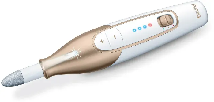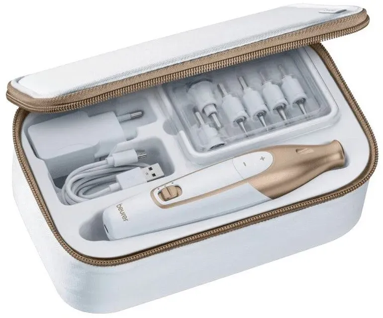 Verfügbarkeit: Sofort verfügbar, Kategorie: Nagelpflege - Beurer - GTIN:4211125570378 - Kraftvolles Akkugerät für eine flexible, kabellose Anwendung, Magic LED-Display - erscheint nur bei Betrieb, 3 Geschwindigkeitsstufen, Rechts/ Linkslauf, Inkl. 10 hochwertigen Aufsätzen: Saphirkegel und Filzkegel, Saphirscheibe, grob und fein, Zylinderfräser, Flammenfräser, Saphirfräser und Nadelfräser, Saphir-Hornhautschleifer, Hornhautschleifer aus Kristallsand, Micro-USB Anschluss, Abschaltautomatik nach 20 Min., Ergonomisches Design, LED-Licht, Aufsätze für Diabetiker geeignet, Inkl. Schutzkappe für Nagelstaub, Inkl. Aufbewahrungs-Etui - 72,96 Euro bei haushaltsparadies.de - gefunden von billiger.de Für 79.38 Euro bei OTTO erhalten Sie ein komplettes Maniküre/Pediküre-Set in Weiß-Gold, das sowohl funktional als auch optisch ansprechend ist. ![]() ![]() BEURER Maniküre-Pediküre-Set Beurer MP 64 Maniküre/Pediküre Weiss-Gold