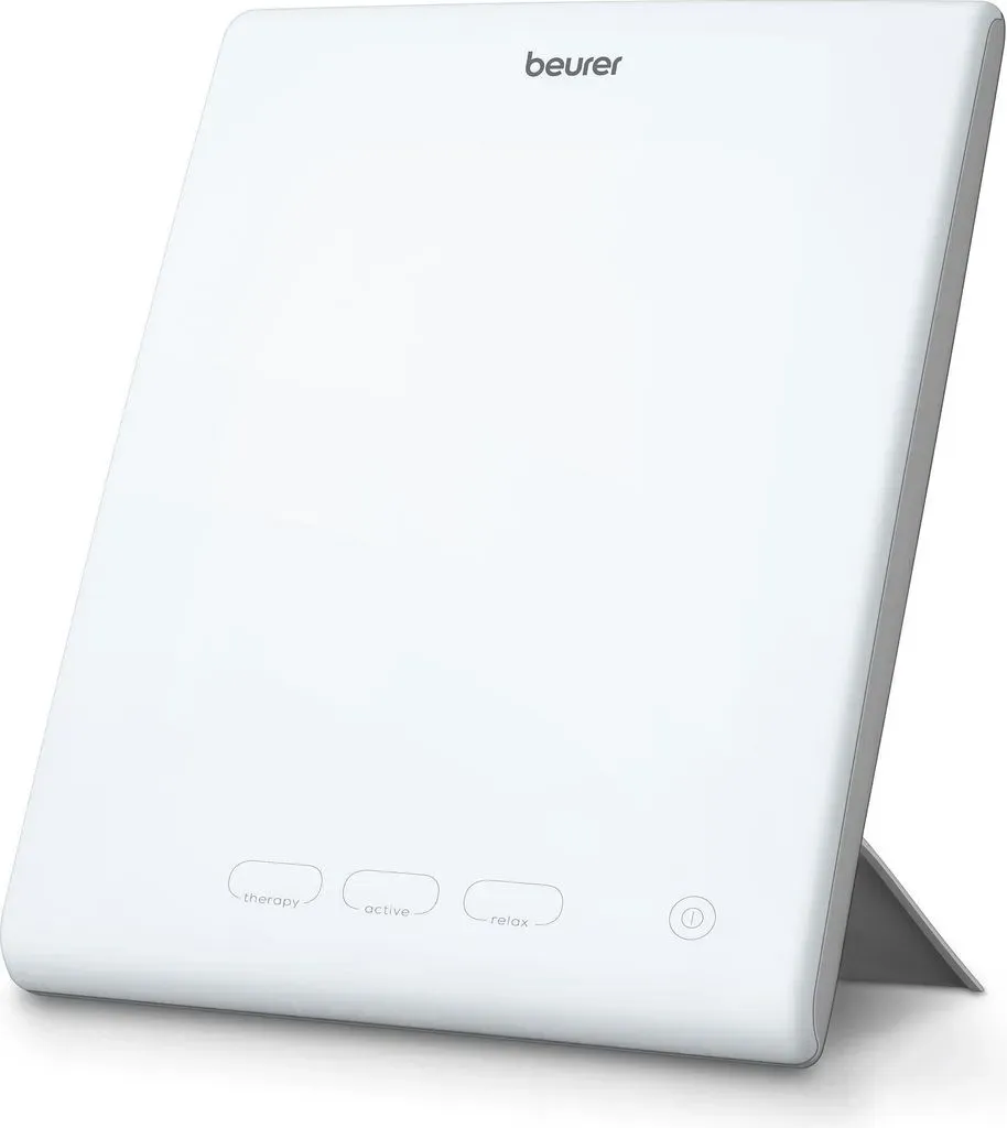 1 Händlerangebote bei billiger.de - Kategorie: Wärmelampen - Beurer - MEDIZINPRODUKT: Die Tageslichtlampe eignet sich durch die Simulation von Tageslicht zur Anwendung bei Lichtmangelerscheinung wie Unausgeglichenheit, gedrückter Stimmung, oder Energie- und Antriebslosigkeit 3 FARBTEMPERATUREN: Mit 3 einstellbaren Farbtemperaturen ermöglicht die Lampe einen geregelten Tages-Nacht-Rhythmus, der Phasen der Therapie (6.500 K), Konzentration (5.000 K) und Erholung (3.000 K) unterstützt THERAPIE-EINSTELLUNG: Bei einem Abstand von 20 cm zur Lampe wird das Tageslicht mit einer Lichtstärke von 10.000 Lux simuliert und ist somit vergleichbar mit der Lichtstärke eines hellen Tages HANDLICH: Mit ihrer Größe und ihrem Gewicht nimmt die TL 45 nicht viel Platz ein und eignet sich ideal für den Arbeitsplatz zu Hause oder im Büro KORMFORTABEL: Die Beleuchtungsfläche umfasst 20 x 20 cm und rt eine flimm- und UV-freie, gleichmäßige Ausleuchtung; in Kombination mit den Touch-Buttons und dem ausklappbaren Standfuß ist die TL 45 besonders komfortabel in der Anwendung - GTIN:4211125608132 ![]() ![]() Beurer, Tageslichtlampe, TL 45 (10000 lx)
