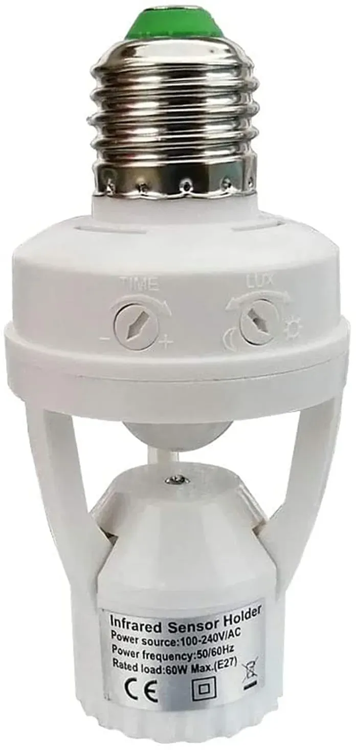 Kategorie: Gartenbeleuchtung - kueohse - GTIN:6033354274685 - 1. Mit hoher Empfindlichkeit kann es Veränderungen im Infrarotspektrum menschlicher Aktivitäten erkennen, Schalter Last automatisch einschaltet. Wenn sich während der Verzögerungszeit jemand innerhalb effektiven Erfassungsbereichs bewegt, schaltet sich der Schalter weiter ein, bis Person den Raum verlässt. Last wird zu diesem Zeitpunkt automatisch ausgeschaltet und intelligente Steuerungsfunktion sorgt dafür, dass das Licht angeht, wenn Leute kommen, und Licht ausgeht, wenn Leute gehen. 3. Die Verzögerungszeit ist einstellbar und die erforderliche Verzögerungszeit kann auch innerhalb des Verzögerungsbereichs nach Belieben angepasst werden. 2. Die Zeitraffer-Farbsegment-Kippschalterauswahl dieses Produkts beträgt 16, 32 und 262 Sekunden. Technische Parameter: 1. Anwendungsbereich: Energiesparlampen, LED-Lampen, Glühlampen - 6,87 Euro bei Amazon Marketplace CE - gefunden von billiger.de Die Lunartec Lampenfassung für 9.99 Euro ist ein beliebtes Modell mit 360°-PIR-Bewegungssensor und Dämmerungsschalter, das oft gute Bewertungen erhält. ![]() ![]()