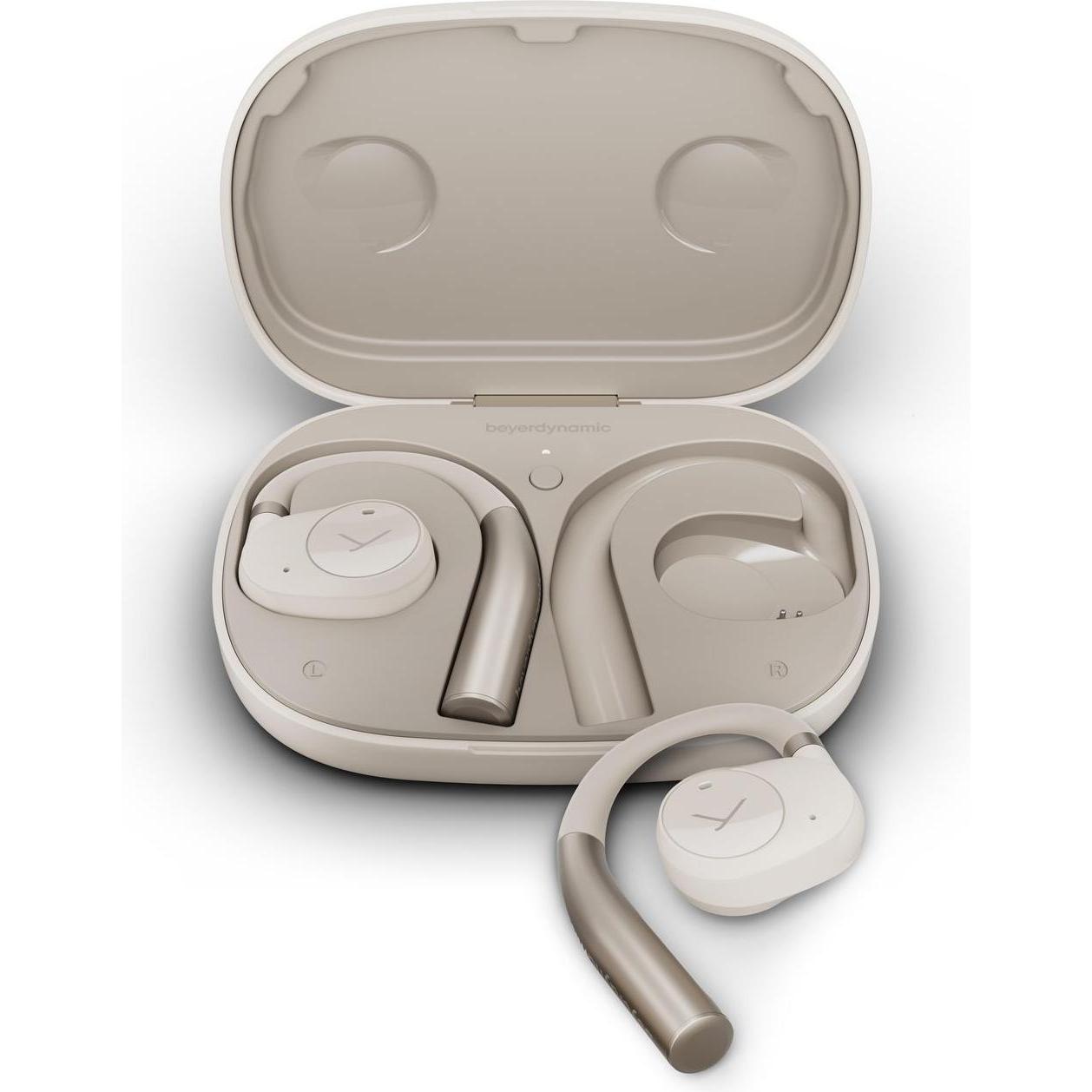 lieferbar-in 6-8 Werktagen bei dirbeyerdynamic VERIO 200 wireless In-Ear-Kopfhörer (Open-Ear-Design; Multipoint Bluetooth 5.3; 35h Akku; IP54-Schutz., über kompatible Smart Devices (Google Assistant, Siri, Alexa), Bluetooth 5.3, Offene In-Ear IP54 Mikrofon App-Steuerung Ladecase) beige
