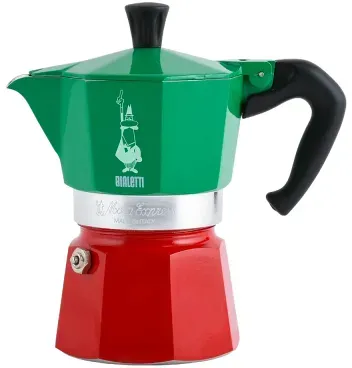 Zubehör zur Kaffee- u. Teezubereitung Kaffee- und Espressomaschinen - EAN:8006363028899 - Genießen Sie aromatischen Espresso wie im Italien-Urlaub - BIALETTI VENUS Espressokocher silber, 4 TassenIhr theoretisches Espresso-Know-how nimmt mit dem BIALETTI VENUS Espressokocher silber, 4 Tassen schnell Form und Geschmack an. Das Modell überzeugt nämlich durch eine einfache Bedienung und erzielt beste Ergebnisse bei der Zubereitung eines echten Kaffeeklassikers.So viele Tassen erhalten Sie mit einem BrühvorgangDer Wasserbehälter kann mit bis zu 170 ml Wasser befüllt werden. Mit einem Brühvorgang können Sie bei vollständig gefülltem Behälter 4 Tassen zubereiten. Für die Verwendung durch wenige Personen oder als Ergänzung zu anderen Geräten ist das Modell daher ideal.Alles zur FunktionsweiseDie Inbetriebnahme ist ganz leicht: einfach den Kocher auf eine Herdplatte stellen und diese so lange eingeschaltet lassen, bis das Wasser in Form von Espresso in die obere Kannenhälfte gestiegen ist.Aus langlebigem EdelstahlDas Gerät ist nicht nur sehr widerstandsfähig, sondern auch pflegeleicht, denn das Gehäuse besteht aus Edelstahl. Edelstahl ist auch das Material, aus dem die Kanne besteht.Über diese praktischen Eigenschaften verfügt das Modell:induktionsgeeignet.Passt dieser Artikel zu Ihren Bedürfnissen?Bestellen können Sie den BIALETTI VENUS Espressokocher silber, 4 Tassen ganz bequem hier bei uns im Online-Shop. - gefunden von Kelkoo Die Bialetti Espressokocher Moka Espresso Tricolore Italia ist eine patriotische und funktionale Wahl für 3 Tassen. ![]() ![]() BIALETTI Espressokocher Moka Espresso Tricolore Italia 3 Tassen (5322) BIALETTI