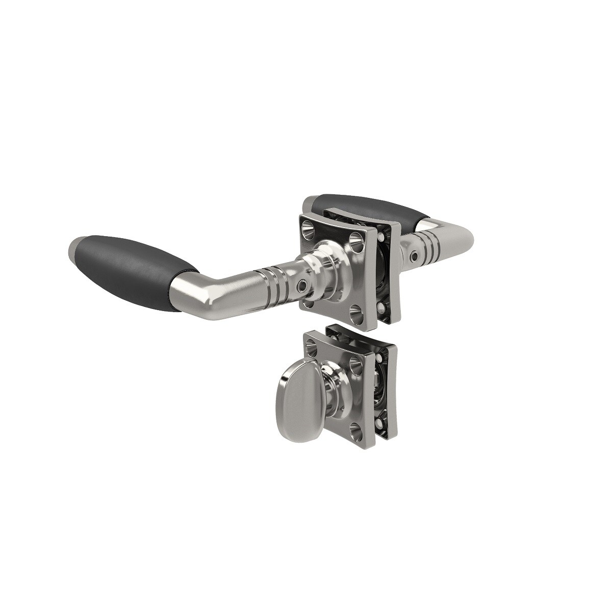 LIENBACHER - EAN: 9004715253202 - Allgemeine Beschreibung Die Türdrücker Türbeschlag Viola ist eine hochwertige Garnitur aus massivem Zamak, die sowohl technische Wertigkeit als auch optische Highlights bietet. Die fest drehbar gelagerte Garnitur ist mit einer Hochhalte- und Rückholfeder ausgestattet, was ein Ausleiern der Garnitur selbst nach Jahren nahezu unmöglich macht. Die Metallunterkonstruktionen mit Stütznocken gewährleisten einen höheren Halt auf der Tür. Technische daten Material: Zamak Ausführung: verchromt / matt vernickelt Rosettenmaß: 52mm x 52mm Rosettenstärke: 10mm Drückerlänge: 128mm Drückertiefe: 45mm Geeignet für Türstärke: 26-45mm (WC DIN Norm) Kompatibilität und Zubehör Verschlussarten: Buntbart für Zimmertüren, Profilzylinder Rosette für Zylinderschlösser, WC-Bad Rosette für Türverriegelung ohne Schlüssel Benötigt spezielles Einsteckschloss für die Rosettenform Installation Inklusive Montageanleitung Lieferumfang: 1x Drückerpaar, 2x überschraubrosetten (WC Garnitur mit WC Verriegelung), 1x 8mm - bei manomano.de - aus Yadore Produktdaten Diese verchromte und schwarz beschichtete Rosettengarnitur bietet einen markanten Kontrast. ![]() ![]() Rosettengarnitur Bicolor - Dukon verchromt eBay schwarz beschichtet Türklinke Drücker