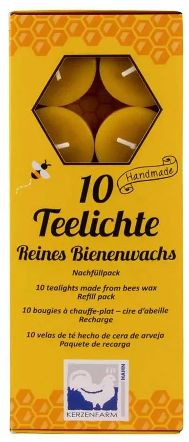 Verfügbarkeit: Auf Lager - Kategorie: Kerzenständer - Ecodis - GTIN:4260147631925 - 7 Teelichter aus Bienenwachs mit Halter - 9,00 Euro bei Amazon Marketplace Home - gefunden von billiger.de Meiers Bienenprodukte bietet hier ein 10er Pack aus reinem Bienenwachs, ideal für den regelmäßigen Gebrauch. ![]() ![]() Meiers Bienenprodukte Teelichter aus reinem Bienenwachs (10 Teelichter)