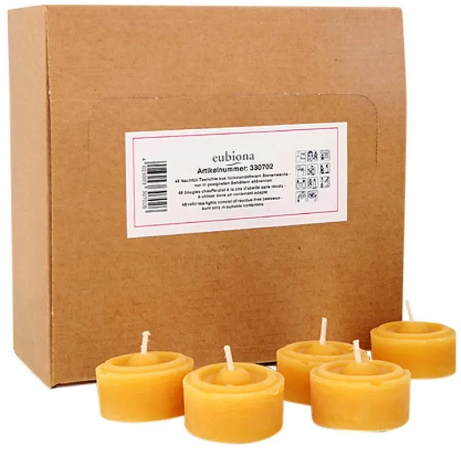 Verfügbarkeit: lieferbar-in 3-4 Werktagen bei dir - 1.05/1Stk - Kategorie: Kerzen - Eubiona - GTIN:4023003307026 - eubiona Teelicht Teelichter - Bienenwachs 48Stk - 50,30 Euro bei OTTO - gefunden von billiger.de Dieses 72er-Set bietet handgemachte Teelichter mit Baumwolldochten und zwei Teelichtgläsern. ![]() ![]() Bienenwachs Teelichter 72 Bienenwachskerzen mit Baumwolldochten unparfümierte Teelicht - Kerzen und 2 Teelichtgläser gelb handgemacht 4 Stunden Brennzeit (Modern, 72, stück)