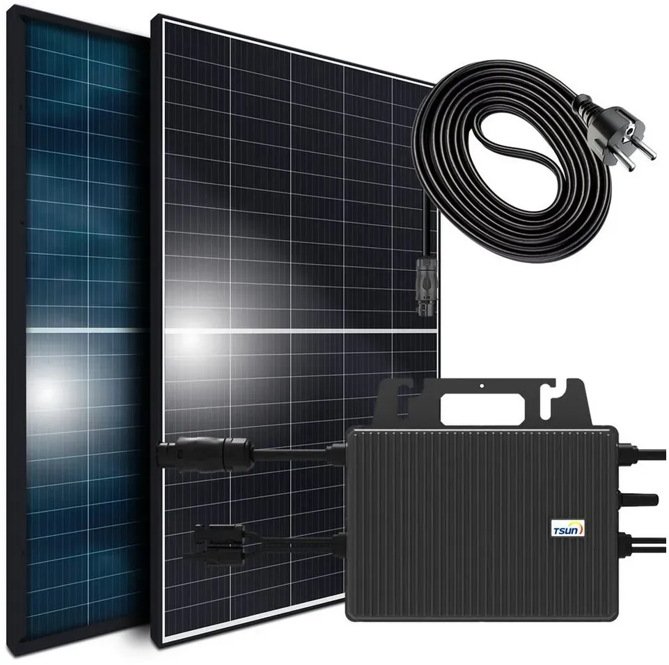 keine Angabe Gewöhnlich versandfertig in 2 bis 3 TagenSUNNIVA 920W Balkonkraftwerk BIFAZIAL FULLBLACK komplett Steckdose TSUN 800W Wechselrichter, PV Solaranlage, 2x 460W Glas-Glas Solarmodule, inkl. 5m Kabel, Bluetooth WIFI, Komplettset