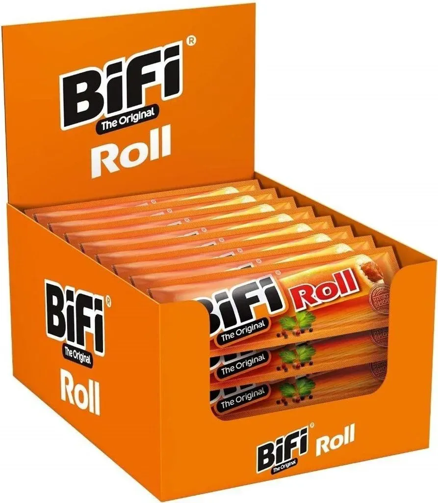 Zustand: Neu - 483,17 € / kg - Wurst-Snacks - Bifi LSI Germany GmbH - - EAN: 4251097421391 - BIFI BBQ: Der rauchige BiFi-Salamistick mit BBQ-Geschmack; dein herzhafter Snack für zwischendurch - immer griffbereit und voller Würze ECHTER BBQ-FLAVOUR: Geräuchert über Buchenholz und verfeinert mit einer kräftigen Gewürzmischung - für den vollen BBQ-Geschmack, ganz ohne Grill SNACK FÜR UNTERWEGS: Egal ob unterwegs, beim Zocken oder im Büro - BiFi BBQ ist dein Optimal Begleiter, wenn dich der Hunger packt PROTEINREICH UND HERZHAFT: Hergestellt aus bestem Schweinefleisch, liefert dir BiFi BBQ nicht nur Geschmack, sondern auch Energie PRAKTISCHE EINZELVERPACKUNG: Einfach einstecken, aufreißen und genießen - BiFi BBQ ist sofort verzehrbereit und bleibt dabei immer frisch - bei Amazon.de Die BiFi Original Roll ist ein beliebter Snack für unterwegs, der Salami im Teigmantel kombiniert und hier in einer größeren Packung erhältlich ist. ![]() ![]() BiFi Original Roll 24 x 45g Salami im Teigmantel Wurstsnack