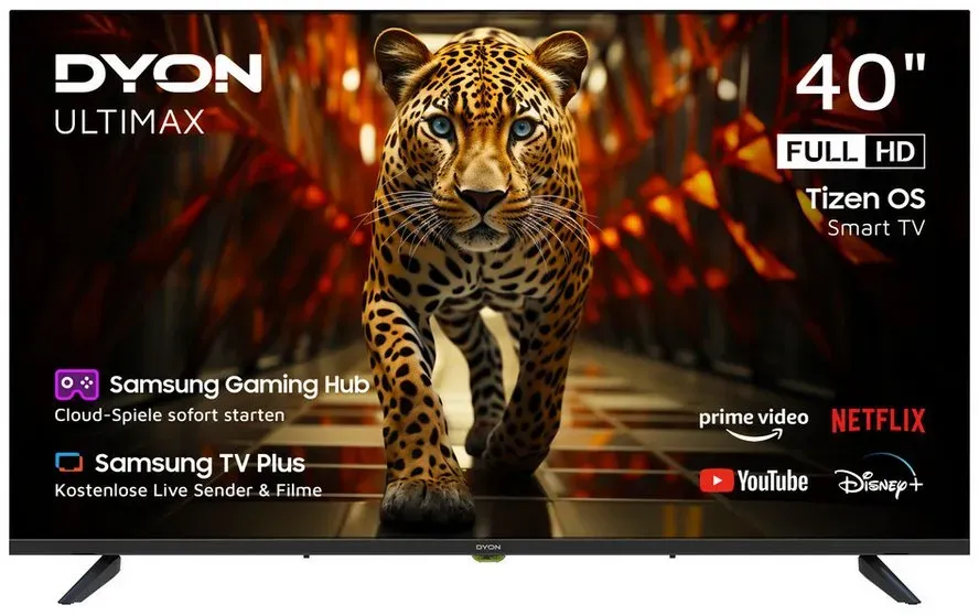 Verfügbarkeit: lieferbar-in 2-3 Werktagen bei dir - EEK: F - Kategorie: Fernseher - DYON - GTIN:4260552544506 - Leistung, Energieverbrauch & Umwelt Modellbezeichnung , Ultimax 40F-TI, Modellserie , Ultimax, Bildschirmdiagonale in Zentimeter , 100 cm, Bildschirmdiagonale in Zoll , 40 ', Bildschirmauflösung in Pixel , 1.920 x 1.080 px, Energieeffizienzklasse (Skala) , F (A bis G), Allgemein Fernseherfunktionen , Bis zu 3.500 Senderspeicherplätze, Elektronischer Programmführer (EPG), Videotext, Untertitel, Sendersortierung, Kindersicherung, Automatische & Manuelle Sendersuche, Favoriten, Gehäuseoptik , Flat, Lieferumfang , DYON Ultimax 40F-TI, Bedienungsanleitung, Standfüße, Fernbedienung (inkl. Batterien), Farbe , Schwarz, TV-Empfang Tunerart , Triple-Tuner, Empfangsstandards , DVB-T2, DVB-C, DVB-S2, CI+, Bildschirm Bildschirmform , Flat, Auflösungsstandard , Full HD, Bildschirmtechnologie , LED, Zeilenanzahl , 1080p, Bildschirmhelligkeit , 220 cd/m2, Seitenverhältnis , 16:9, Betrachtungswinkel , 178 °, Helligkeitssteuerung , Manuell, Betrachtungswinkel vertikal , 178 °, Betrachtungswinkel horizontal , 178 °, Multimediafunktionen Internetfähigkeit , Smart-TV, App Store , Tizen, Verfügbare Apps , Netflix, Prime Video, Disney+, Samsung TV Plus, Gaming, HUB, Smartfunktionen , Samsung TV Plus, Samsung Gaming, Samsung Smart HUB, Netflix, Prime Video, Disney+, Betriebssystem / Software Betriebssystem , Ultimax, Netzwerk- und Verbindungsarten Netzwerkstandard , WLAN ... Ein 40 Zoll JVC Fire TV mit Full HD und HDR ist eine gute Mittelklasse-Option für ein immersives Seherlebnis. ![]() ![]() JVC Fernseher 40 Zoll Fire TV Full HD Smart TV HDR Fernseher Alexa Triple-Tuner LED TV LT-40VRF3555