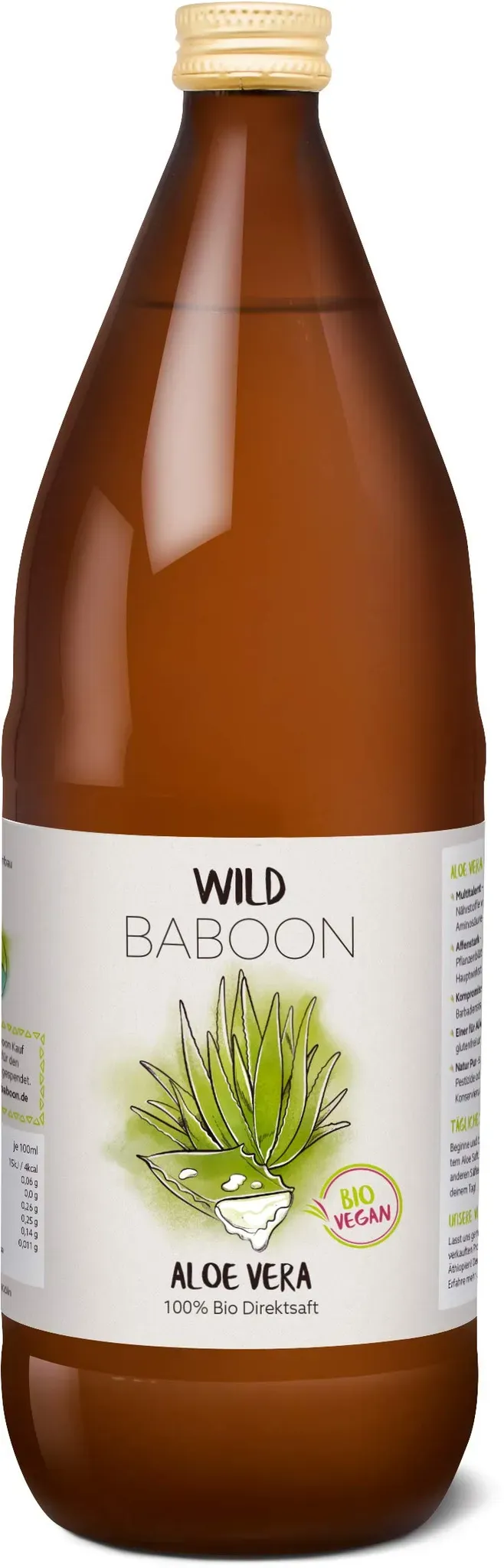 Kategorie: Säfte - Wild Baboon - GTIN:8719326117911 - WAS UNS AUSMACHT: Wir ren eine Mindestmenge des wertvolles Inhaltsstoffes Aloverose von 1.200 mg/l ! Unsere Pflanzen wachsen in besten, nährstoffreichen Böden in Mexiko und kommen von einer Bio-zertifizierten Aloe Vera Farm, die gänzlich mit erneuerbaren Energien produziert! Unsere Produkte sind alle vegan, nachhaltig und tierversuchsfrei. QUALITäT: Bei der Herstellung in Mexiko wird der Aloe Saft mehrfach geprüft und zertifiziert durch etablierte Zertifizierer wie EcoCert und IASC. Die Abfüllung erfolgt in Deutschland. Die Qualität wird mit fortlaufenden Laboruntersuchungen sichergestellt. VOLL VERWöHNT: Sonnengereift werden die saftigen Bio Aloe Vera Blätter (Bio nach DE-öKO-005) schonend von Hand geerntet. Es werden ausschließlich natürliche Dünger verwendet, also keine Pestizide oder sonstige chemische Mittel. DER ALLROUNDER: Die Aloe Vera ist bekannt für ihre antiviralen, antibakteriellen und entzündungshemmenden Eigenschaften. Dies kommt dem gesamten Stoffwechsel zu Gute. Außerdem wird die Zellerneuerung angekurbelt, was für einen gesunden, schönen Körper essenziell ist. Kunden berichten ebenso von Erfolgen bei Hautekzem, Neurodermitis, Psoriasis oder einem irritierten, gestressten Magen-Darm Trakt. VON NATUR AUS ökologisch, vegan, laktosefrei, glutenfrei und kalorienarm. Geeignet für Menschen, die einen bewussten, natürlichen Lebensstil anstreben. Wir empfehlen morgens und abends je 40ml gekühlt zu genießen für ... Dieser 3-Liter-Pack ist ideal für Vielverbraucher und bietet ein gutes Preis-Leistungs-Verhältnis pro Liter. ![]() ![]() Aloe Vera Saft Bio 99.7% Aloe Vera Saft Gel Zum Trinken Aus Barbadensis, Ohne Zusätze, Für Verdauung, Immunabwehr & Hautpflege, 3L Trinkgel Vegan - Aronia Charlottenburg