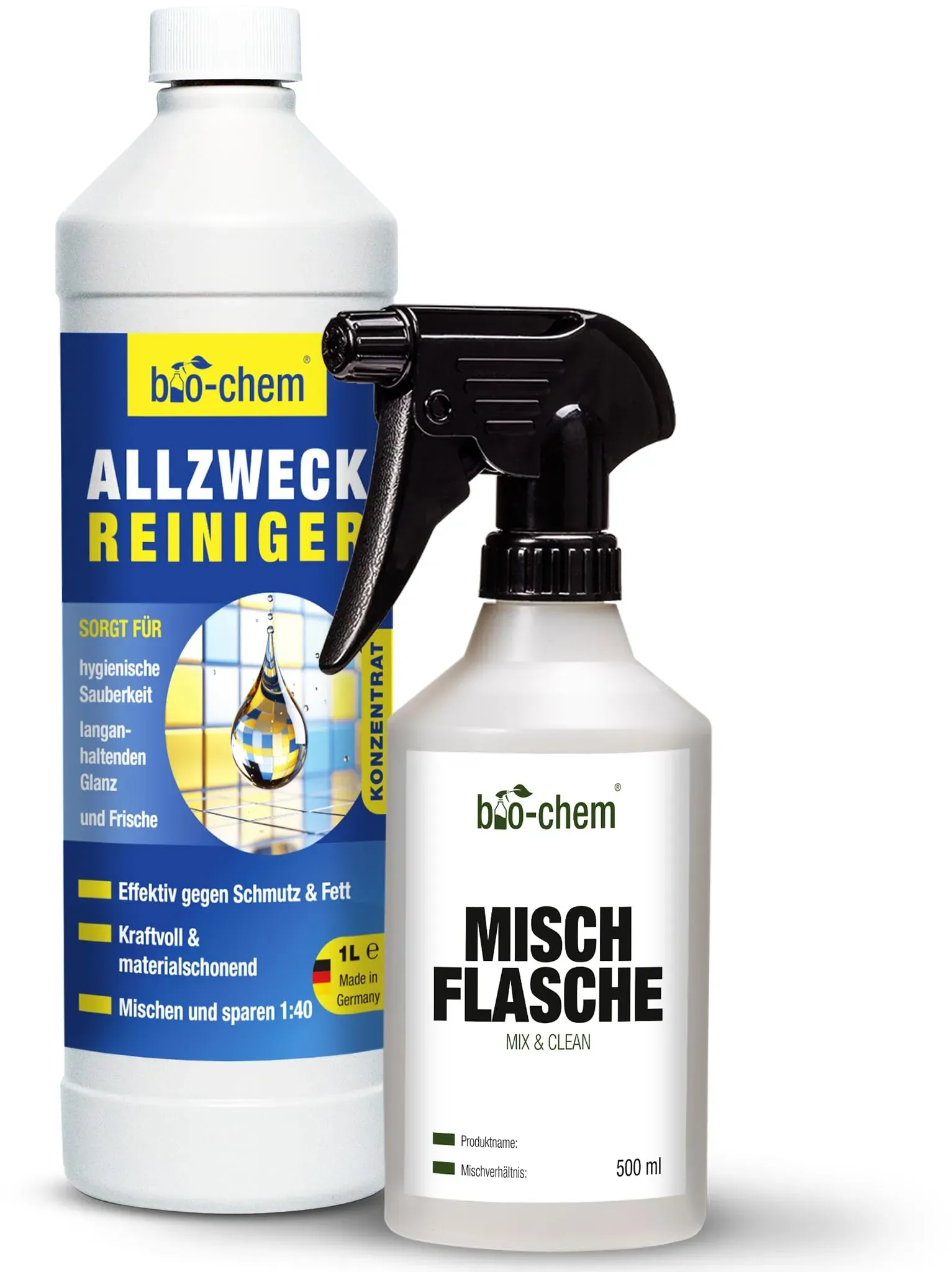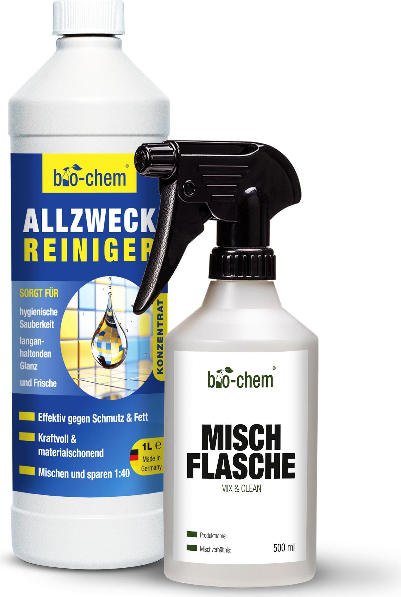 Kategorie: Reinigungsmittel - BIO-CHEM - GTIN:4024048801876 - VIELSEITIG: Beseitigt kraftvoll jegliche Verschmutzung im Haushalt durch Fett, pflanzliches öl, Filzstifte, Tinte, Blut, Schuhcreme sowie Nahrungs- und Getränkerückstände. Auch im Anwendungsgebiet KFZ & Hobbywerkstatt für die Entfernung von öl, Harz, Wachs, Nikotin, Ruß, Insekten, Bitumen- und Teerspritzer geeignet. EINSETZBAR als Küchenreiniger, Fliesenreiniger, Glasreiniger, Kunststoffreiniger, Teppichreiniger, Polsterreiniger, Fettlöser, Bodenreiniger, Bildschirmreiniger u.v.m. EFFEKTIV: Reinigt schnell wirkend und fast selbsttätig! Dank hoher Fettlösekraft besonders nützlich in der Küche um fettige Beläge durchs Kochen/ Braten an z.B. Dunstabzugshaube, Ceranfeld und Kühlschrank zu lösen. Die optimale Alternative zu herkömmlichen Putzmittel und Putzstein! MATERIALSCHONEND: Anwendbar auf allen Oberflächen aus Metall, Kupfer, Edelstahl, Eisen, Blech, Kunststoffen jeder Art, Holz, Keramik, Stein, Gummi, Porzellan, Glas, Textilien wie Teppich und Polster. Verdünnt auch auf empfindlichsten Oberflächen wie Lack, Aluminium und Laminat verwendbar! SOGAR in Verbindung mit einem Hochdruckreiniger oder Bodenwischer nutzbar. ERGIEBIG: Der Allrounder ist ein Super-Spar Konzentrat, das sich 1:40 verdünnen lässt und trotzdem höchste Reinigungsleistung rt. Bereits wenige Sprühstöße des Mittels reichen aus für ein hervorragendes Ergebnis! Damit nicht nur Geld und Reiniger sparen, sondern auch Plastik. UMWELT- UND ... ![]() ![]() bio-chem Allzweckreiniger Konzentrat - Extrem leistungsstark für hygienische Sauberkeit - 1000 ml + Handspray-Mischflasche 0.5 l - Kraftreiniger Küchenreiniger - für den gesamten Haushalt, Küche & Bad