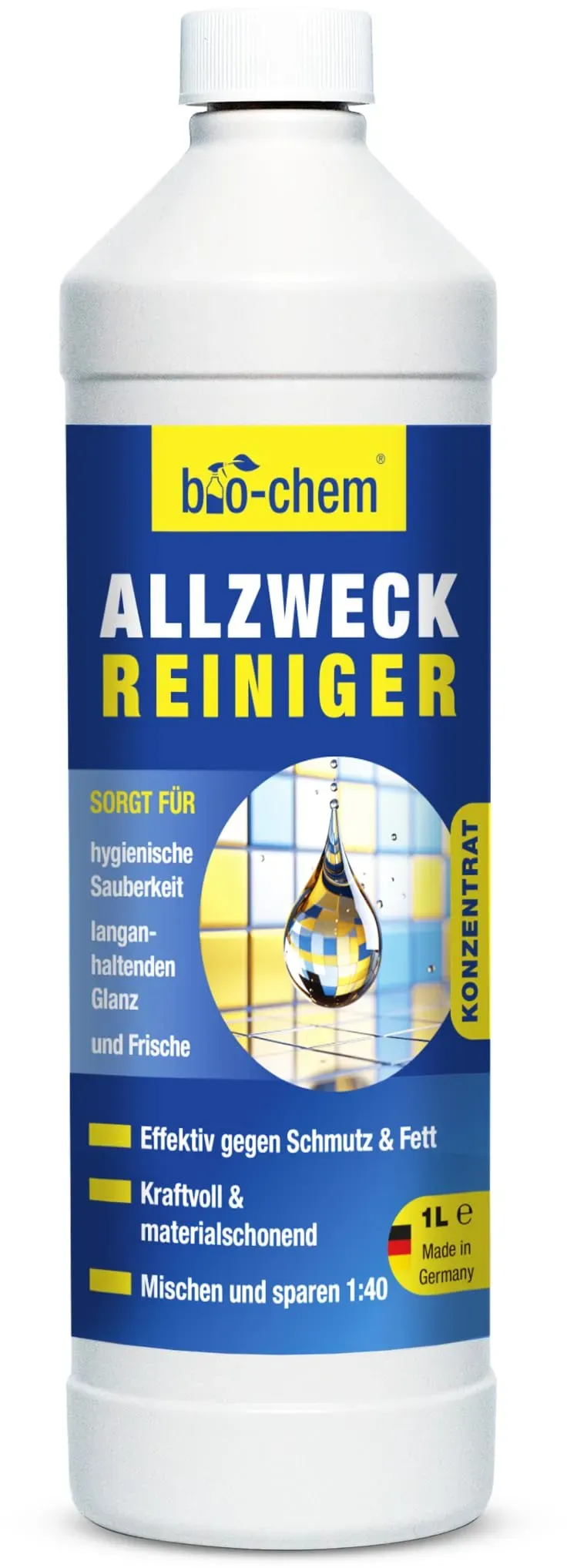EAN: 4024048801876 - VIELSEITIG Beseitigt zuverlässig Verschmutzungen wie Fett, Tinte, Blut, Schuhcreme und Nahrungsrückstände. Auch für KFZ & Werkstatt geeignet, entfernt öl, Harz, Nikotin, Ruß, Insekten und Teerspritzer. Ideal als Küchen-, Glas-, Teppich- und Bodenreiniger. EFFEKTIV Reinigt schnell und fast selbsttätig! Mit hoher Fettlösekraft für hartnäckige Beläge an Dunstabzugshaube, Ceranfeld oder Kühlschrank. Die optimale Alternative zu herkömmlichen Reinigern. MATERIALSCHONEND Geeignet für alle Oberflächen wie Metall, Kunststoff, Holz, Keramik, Glas, Textilien und sogar empfindliche Flächen wie Lack und Aluminium. Auch mit Hochdruckreiniger oder Bodenwischer nutzbar. ERGIEBIG Sparsam im Einsatz! Wenige Sprühstöße genügen für hervorragende Ergebnisse. - bei kaufland.de - aus Yadore Produktdaten ![]() ![]() bio-chem Allzweckreiniger Konzentrat - Extrem leistungsstark für hygienische Sauberkeit - 1000 ml + Handspray-Mischflasche 0.5 l - Kraftreiniger Küchenreiniger - für den gesamten Haushalt, Küche & Bad