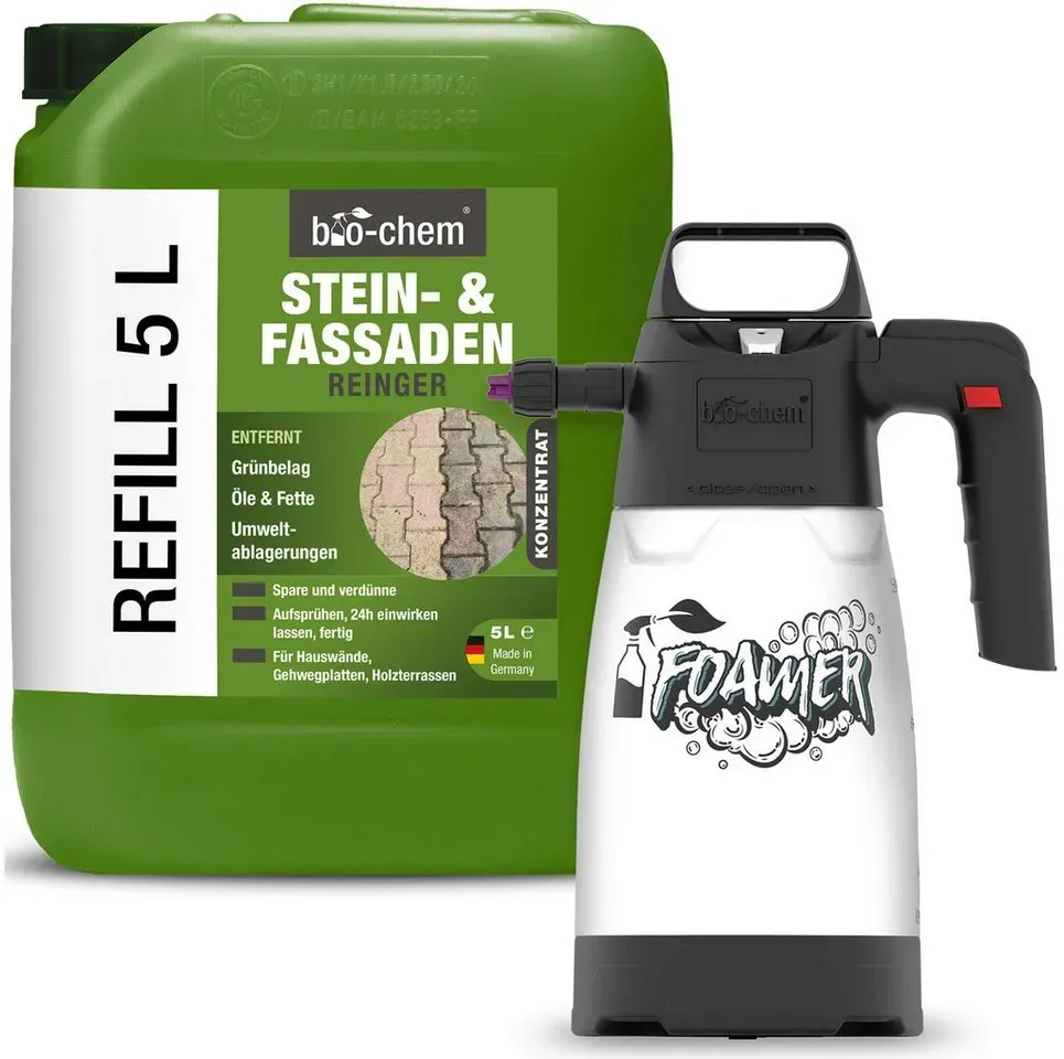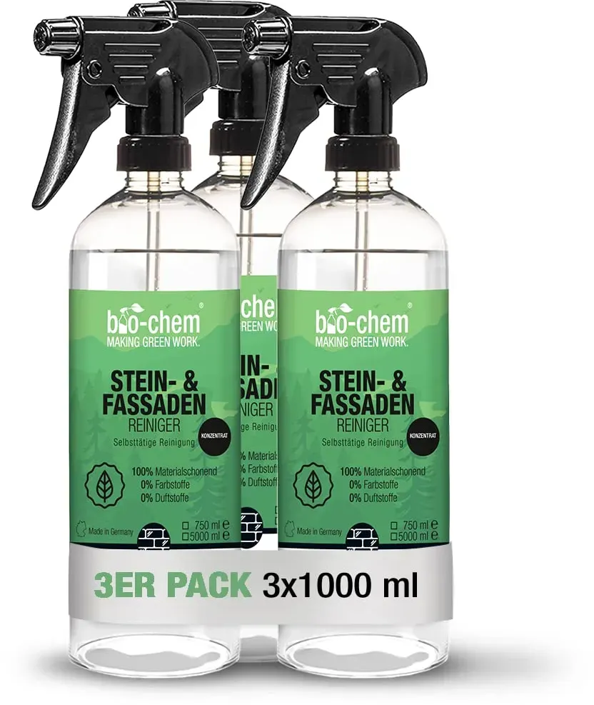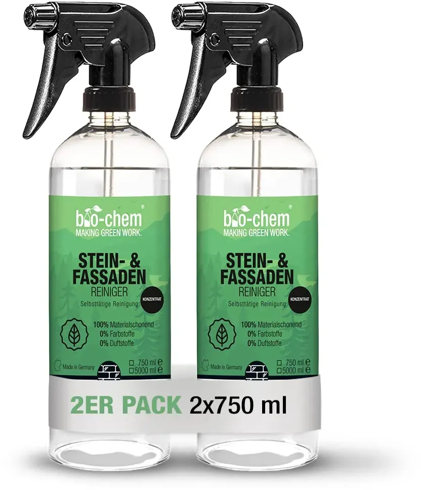 Kategorie: Reinigungsmittel - BIO-CHEM - GTIN:4024048803696 - bio-chem - Stein- und Fassadenreiniger 10-Fach Konzentrat extra-stark - 2x 750 ml - Außenflächenreiniger, Steinreiniger, Außenanlagenreiniger, Dachreiniger, Terrassenreiniger - 23,90 Euro bei Amazon Marketplace Health & Personal Care - gefunden von billiger.de ![]() ![]() Stein- und - Fassadenreiniger 3x eBay 0.75 l Handsprayflasche
