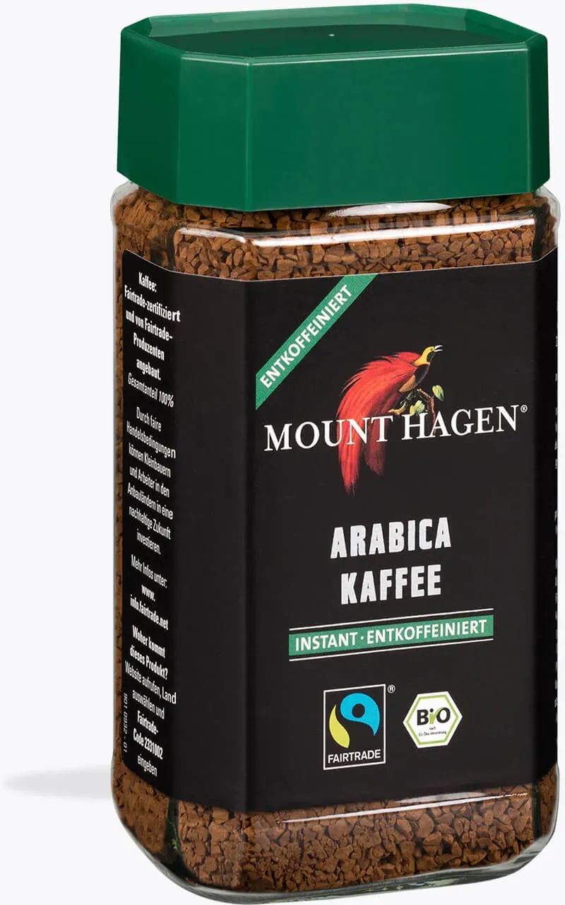 EDEKA - EAN: 4311501119624 - Bio-Instantkaffee. - bei edeka24.de - aus Yadore Produktdaten Ein entkoffeinierter Bio Arabica Kaffee von Mount Hagen, ideal für alle, die den Kaffeegeschmack ohne Koffein genießen möchten. ![]() ![]() Mount Hagen Arabica Kaffee entkoffeiniert löslicher Kaffee 100 g