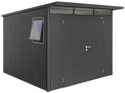 Verfügbarkeit: 10-15 Werktage - 1.889,00 € / 1 St - Kategorie: Gartenhäuser - Biohort - GTIN:9003414190702 - Das äußerst stabile Biohort Gerätehaus AvantGarde macht seinem Namen alle Ehre: attraktives Aussehen, viele praktische Vorzüge, umfangreiche Grundausstattung. Bei diesem Modell handelt es sich um das Einzeltür-Modell, das Doppeltür-Modell finden .. - 2055,08 Euro bei koempf24.de - gefunden von billiger.de Dieses Modell mit Doppeltür in dunkelgrau-metallic bietet maximalen Komfort und ist ideal für größere Gegenstände. ![]() ![]() Biohort Gerätehaus Avantgarde mit Doppeltür 260 x 300 cm (Gr. A7 - alte Größe XL) Edelstahl-Drückergarnitur dunkelgrau-metallic