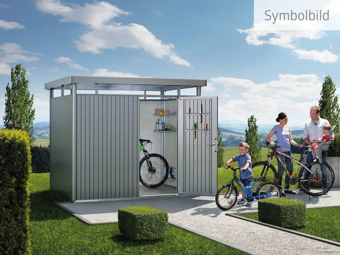 9 Händlerangebote bei billiger.de - Kategorie: Gartenhäuser - Biohort - Das Biohort Metall-Gerätehaus ist kompakt gestaltet mit einer Grundfläche von 4,6 m2. Das ansprechende Gerätehaus aus Metall eignet sich besonders zur Aufbewahrung von Gegenständen. Der breite Eingang ermöglicht ein einfaches Betreten des Metall-Gerätehauses, auch mit größeren Geräten, Gartenutensilien, Fahrrädern und Gartenmöbeln. Es bietet eine Durchgangsbreite von 76 cm und eine Durchgangshöhe von 182 cm. Metall-Gerätehaus mit robuster Kontruktion Das Haus verfügt über eine stabile Konstruktion, mit einer Wandstärke von 0,5 mm. Die maximalen Schneelast des Flachdachs liegt bei 150 kg/m2. Die Firsthöhe beträgt 222 cm, wodurch eine angenehme Kopffreiheit im Innenraum gegeben ist. Die Oberfläche des Metall-Gerätehauses ist feuerverzinkt & lackiert, um es optimal vor Witterungseinflüssen zu schützen und Korrosion vorzubeugen. Modernes Design Das Metall-Gerätehaus überzeugt durch sein ansprechendes Design und ist dabei in der Farbe Dunkelgrau-Metallic gehalten. - GTIN:9003414840300 Dieses silber-metallic Gerätehaus mit Doppeltür bietet eine gute Balance aus Preis und Funktionalität. ![]() ![]() Biohort HighLine H2 2,75 x 1,95 m silber-metallic Doppeltür