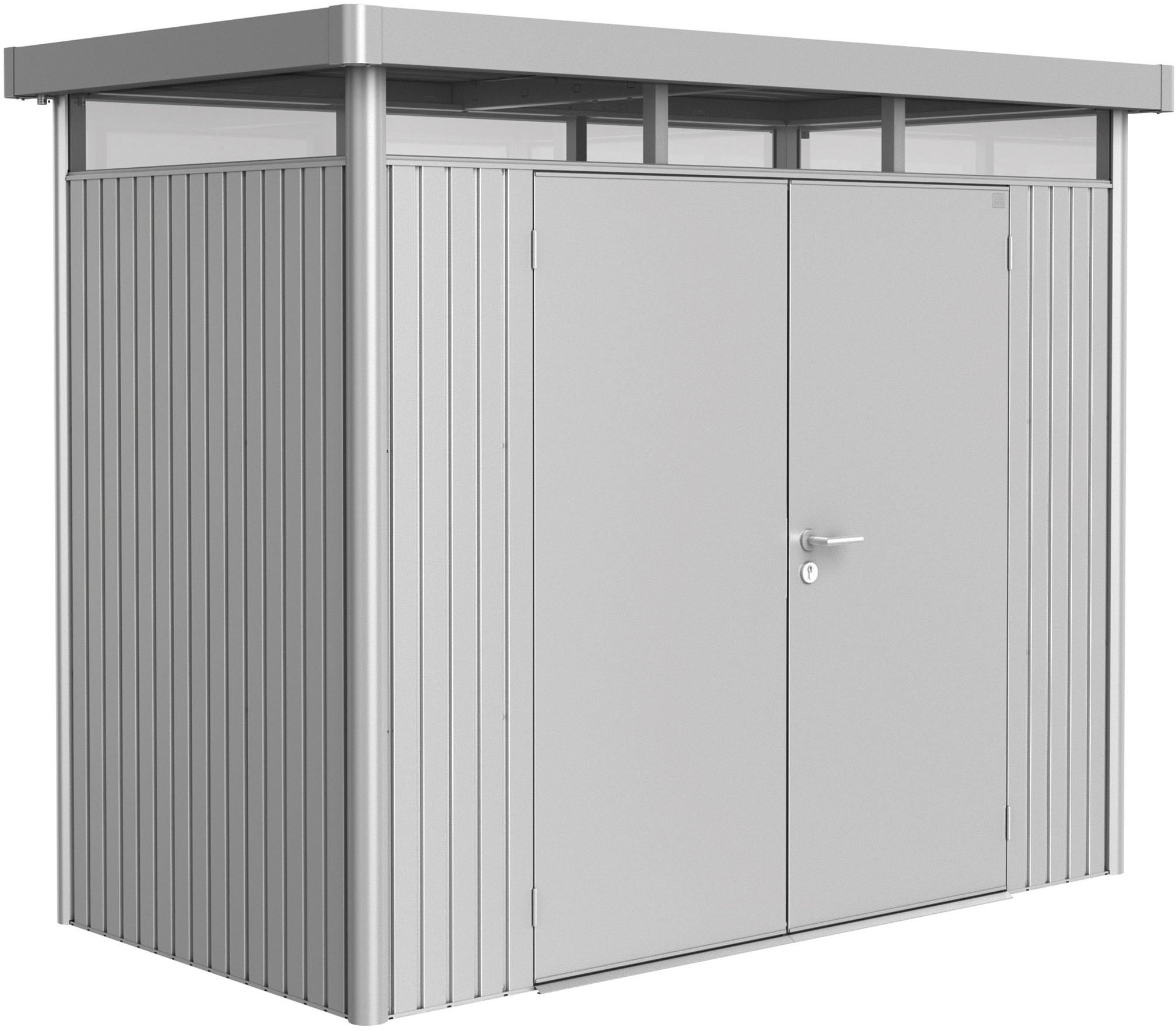 Der angezeigte Preis könnte seit dem letzten Update gestiegen sein - EAN: 9003414180208 - Produktdetails: Art Tür: Einflügeltür, Form Dach: Satteldach, Anzahl Einlegeböden: 2 Stk., Bauweise: Steck- und Schraubsystem, Art Schloss: Zylinderschloss, Eigenschaften: UV-beständig, für ganzjährigen Gebrauch geeignet, witterungsbeständig, Maße ... - Zustand: NEW - bei BAUR Versand - gefunden von Buycentral Dieses größere stylische Metall-Gartenhaus mit Flachdach bietet viel Platz und ist eine beliebte Wahl für größere Gärten. ![]() Gerätehaus BIOHORT HIGHLINE Gr. H5, verschiedene Farben , grau (dunkelgrau, metallic), Stahl, Gerätehäuser, stylisches Metall-Gartenhaus mit Flachdach