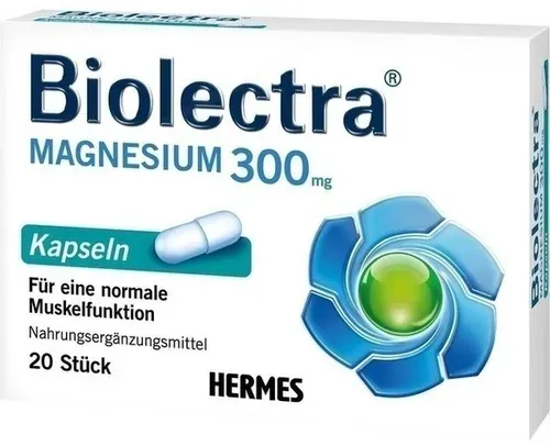 Kategorie: Nahrungsergänzungsmittel - Hermes Arzneimittel - GTIN:4066215003058 - PZN:05561507 - Nahrungsergänzungsmittel sind kein Ersatz für eine ausgewogene, abwechslungsreiche Ernährung und gesunde Lebensweise. Produkteigenschaften: Bezeichnung: Nahrungsergänzungsmittel. Verwendung/A... - 9,51 Euro bei Mycare - gefunden von billiger.de Apo.com bietet 20 Kapseln für 9.78 Euro an, was eine bequeme Online-Bestellmöglichkeit darstellt. ![]() ![]() Hermes Arzneimittel Biolectra Magnesium 300 mg Kapseln