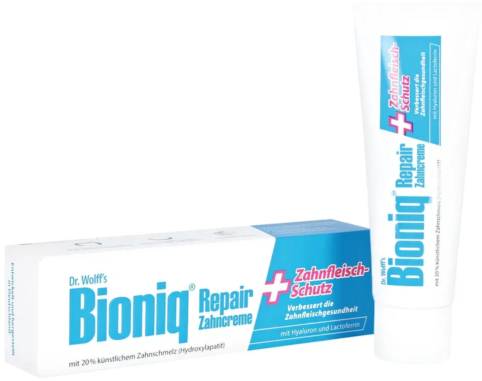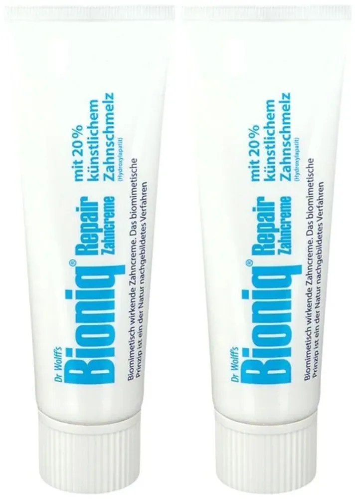 Verfügbarkeit: 1-2 Werktage - 15,18 /l - Kategorie: Zahnpflegeartikel - Dr. Kurt Wolff - GTIN:4008666830074 - PZN:17206639 - Bioniq Repair Zahn-Milch 400 ml - rezeptfrei - von Dr. Kurt Wolff GmbH & Co. KG - Mundwasser - 400 ml - 6,07 Euro bei DocMorris Apotheke - gefunden von billiger.de Dieses Angebot für die Standard-Zahncreme ist bei Amazon Marketplace Händlern beliebt und preislich attraktiv. ![]() ![]() Bioniq Repair-Zahncreme - 1 x 75 ml - reparierende Zahnpasta mit knstlichem Zahnschmelz, ohne Fluorid