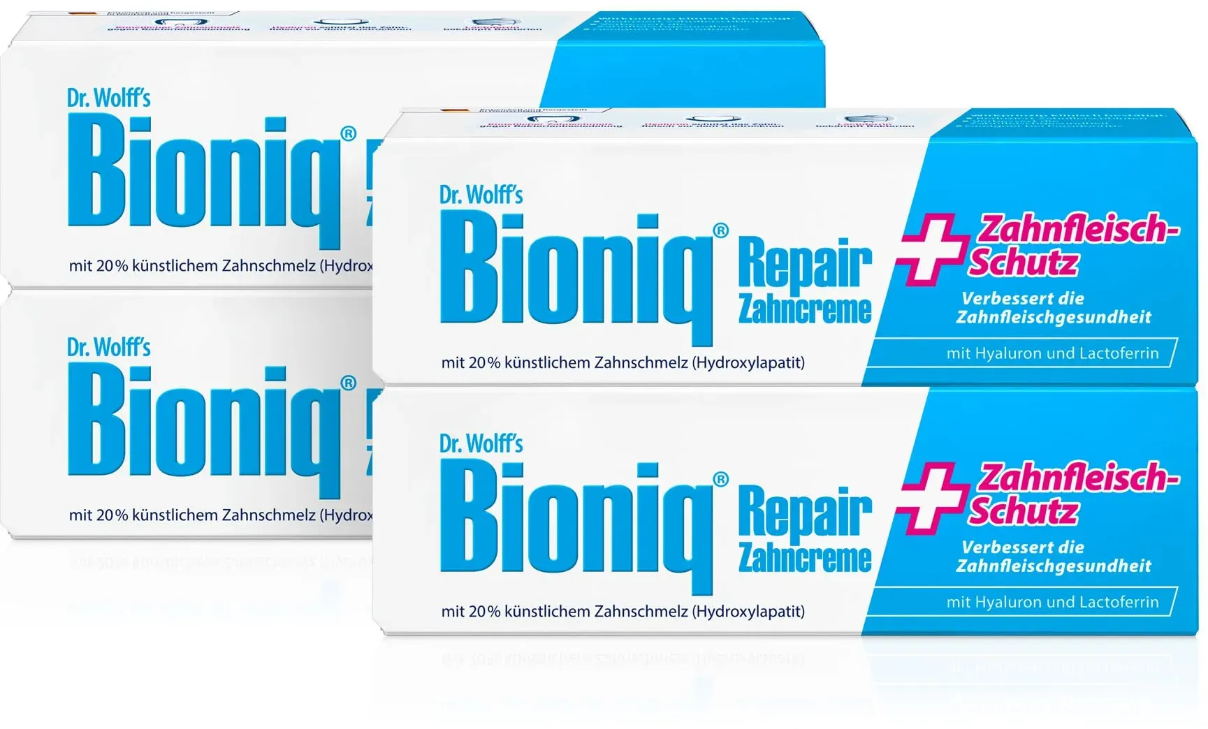 Auf Lager Versand durch AmazonBioniq Repair-Zahncreme Zahnfleisch-Schutz - 4 x 75 ml - reparierende Zahnpasta mit Hydroxylapatit ? schtzt vor Zahnfleisch-Entzndungen, Zahnstein und Zahnbelag ? ohne Fluorid