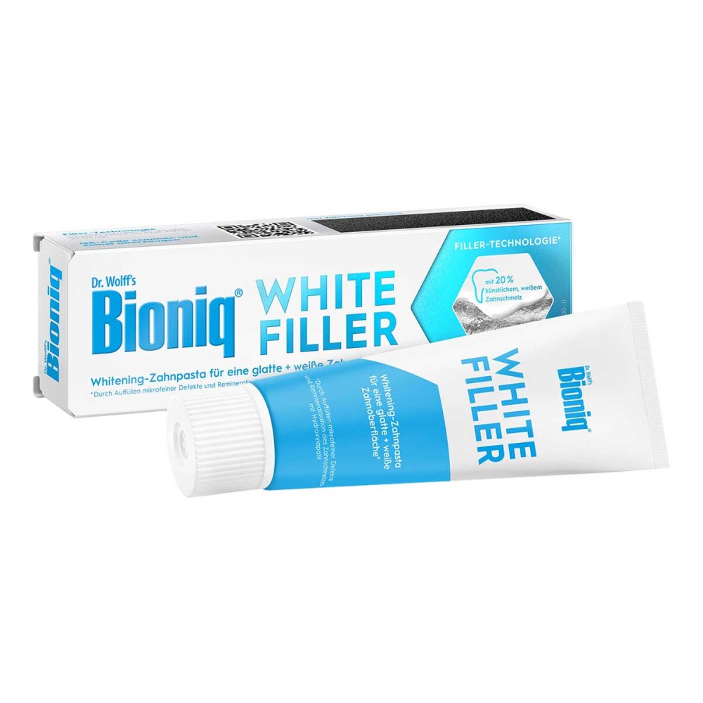 Bioniq white filler META PreisvergleichMit dem Meta-Preisvergleich suchen Sie gleichzeitig bei den großen Preisvergleich Portalen!Jetzt live Suche nach bioniq white filler starten! Bioniq white filler KaufberatungBioniq White Filler ist eine Whitening-Zahnpasta der Marke Bioniq (Dr. Kurt Wolff) mit 20 % Hydroxylapatit als Hauptmerkmal, die mikrofeine Zahn-defekte auffüllt, eine weiße Schutzschicht bildet und Verfärbungen schonend entfernt - ideal für tägliche Anwendung ohne Peroxide oder aggressive Partikel.[1][2][3][4] Wichtige Kaufkriterien und zu beachtende PunkteBeachten Sie bei der Kaufentscheidung folgende Aspekte, die das Produkt auszeichnen und für empfindliche Zähne geeignet machen: