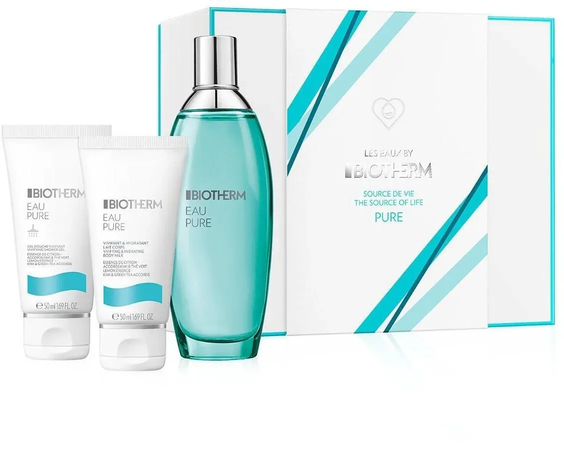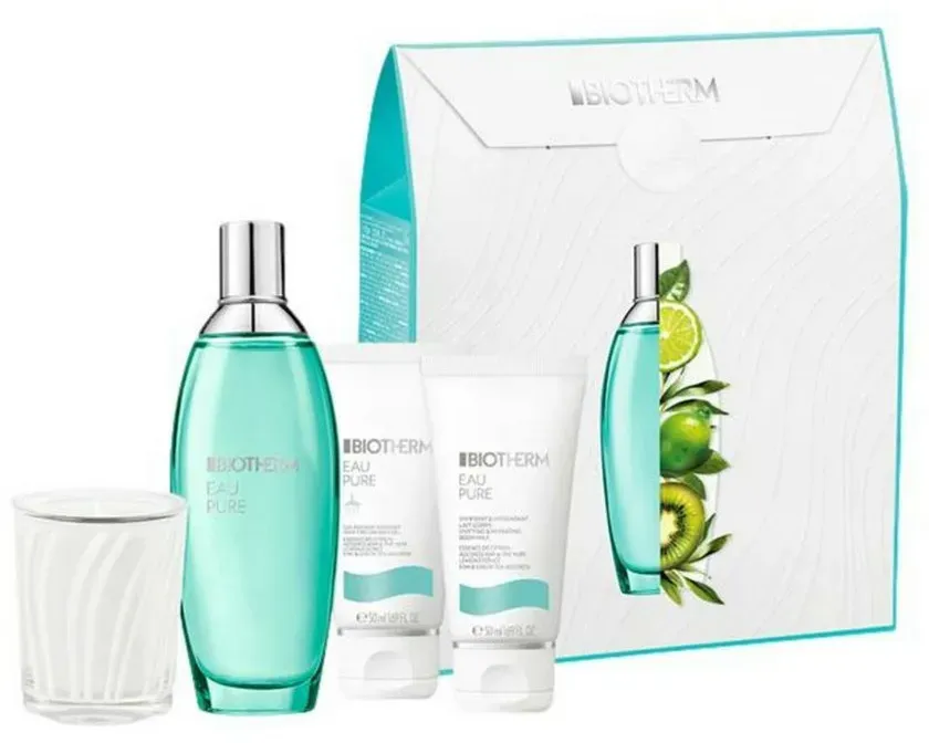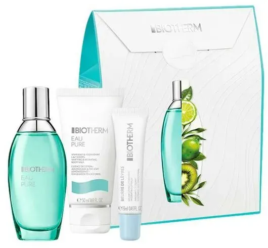 3 Händlerangebote bei billiger.de - Kategorie: Damendüfte - Biotherm - Erlebe das Gefühl der natürlichen Reinheit, die Dich sinnlich erfrischt! Das Eau de Toilette Eau Pure von Biotherm belebt mit dem Duft grüner Früchte und Pflanzen, wie Kiwi, Limette, Rhabarber und grünem Tee. In der Herznote kommen blumige Töne von Jasmin, Lotusblüte und Reseda zum Vorschein. Die Wärme von Patchouli, Amber, Zedernholz und Moschus runden die Basisnote des herrlich abgestimmten Körperdufts ab. ätherische öle aus Salbei und Limette sind ebenso in dem Duft enthalten und pflegen die Haut intensiv. Sie wirkt strahlend-schön und erhält einen samtigen Glanz. Pflege Deine Haut und erfrische Deine Sinne mit dem Eau Pure Körperpflegespray von Biotherm. Die Bodylotion mit Vitamin E und ätherischen ölen spendet der Haut Feuchtigkeit und belebt sie intensiv. Die leichte und erfrischende Textur zieht schnell ein und hinterlässt den vitalisierenden Duft von Eau Pure. Nach der Verwendung des Duschgels ist die Haut zart und der Körper fühlt sich revitalisiert an. - GTIN:3614274330984 Das M-Set ist eine gute Wahl für ein mittelgroßes Geschenkset mit Duft und Pflegeprodukten. ![]() ![]() Biotherm Eau Pure M-Set